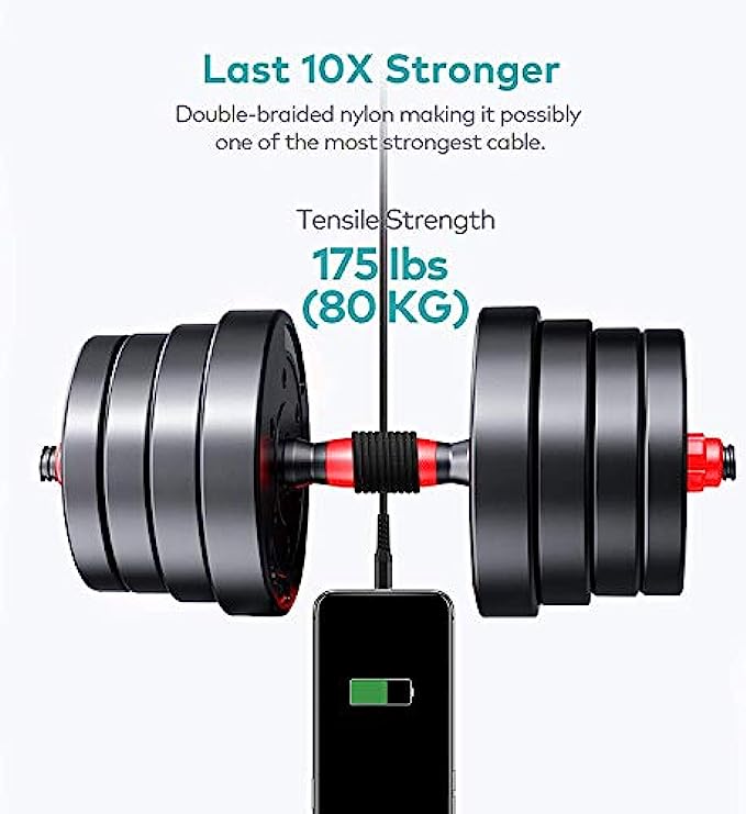 Nylon Braided: Flexible charging cable has high-quality double Nylon braided jacket and core material. Compact aluminum alloy shell adds more protection to both and usb-A connectors, allows 40000 plus bending and repeated unplugging.