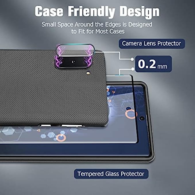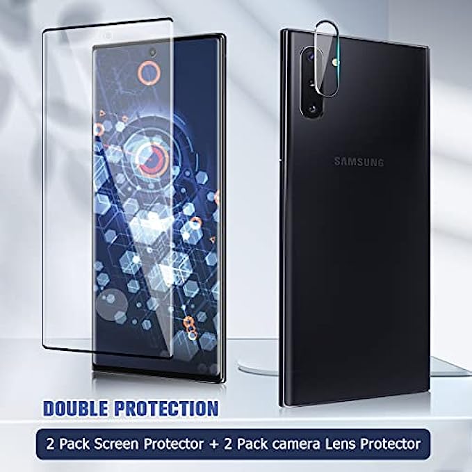 【Exclusively designed for Samsung Galaxy Note 10 Plus】: Precise cutouts, Full coverage protect the whole screen and Suitable for use with soft phone case to prevent edges-peeling up., compatible with most Samsung Galaxy Note 10 Plus cases and covers. 【9H HARDNESS&ANTI-SCRATCH】:Nano-level precision cutting process tempered glass for Samsung Galaxy Note 10 Plus will fit your screen perfectly and gives your phone maximum protection from drops, scratches and scrapes with an industry-leading glass strength of 9H hardness. designed to offer the maximum amount of coverage for your phone's screen. 【High Definition & Touch Sensitivity】:0.2mm thickness is reliable and resilient, and promises full compatibility with touchscreen sensitivity. High definition transparency film with 99% HD provides total clarity and maximum resolution. 【Easy Installation & Bubble-Free】Easy, no trouble and bubble-free installation that easily fits your device’s screen. Easy to apply and remove. Clear acrylic adhesive won’t leave residue. The anti-fingerprint, oleophobic coating resists smudges to maintain the HD clarity of your display. Fits with most Galaxy Note 10 Plus cases on the market and won’t interfere with installation. A perfect fit is guaranteed! 【Full Protective】: provide both Galaxy Note 10 Plus Tempered Glass screen protectors and Galaxy Note 10 Plus camera protectors, which will protect your phone from screen to camera all around. Offer full protection and double sercure.