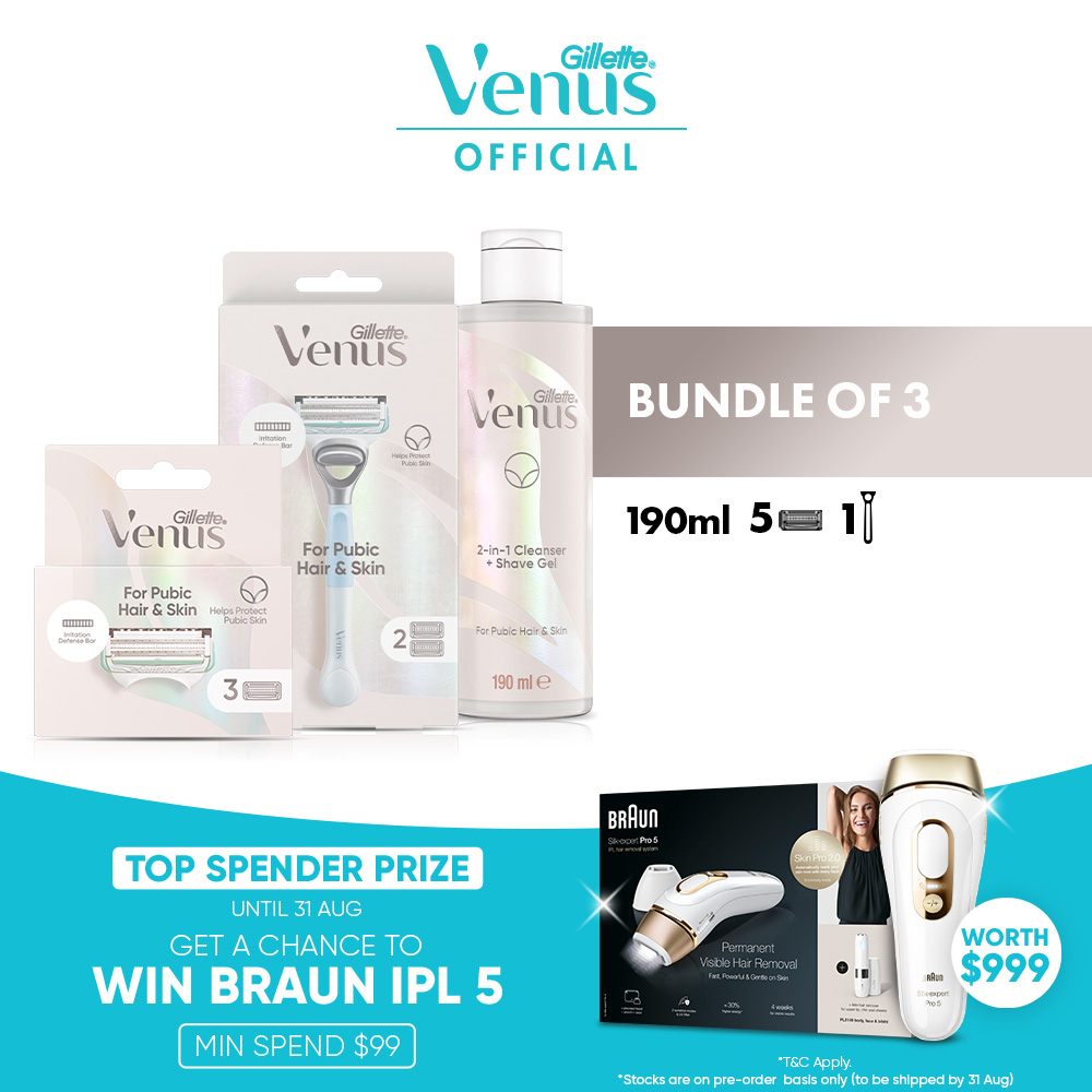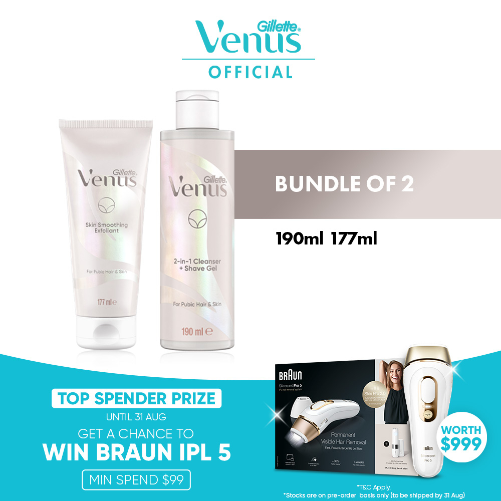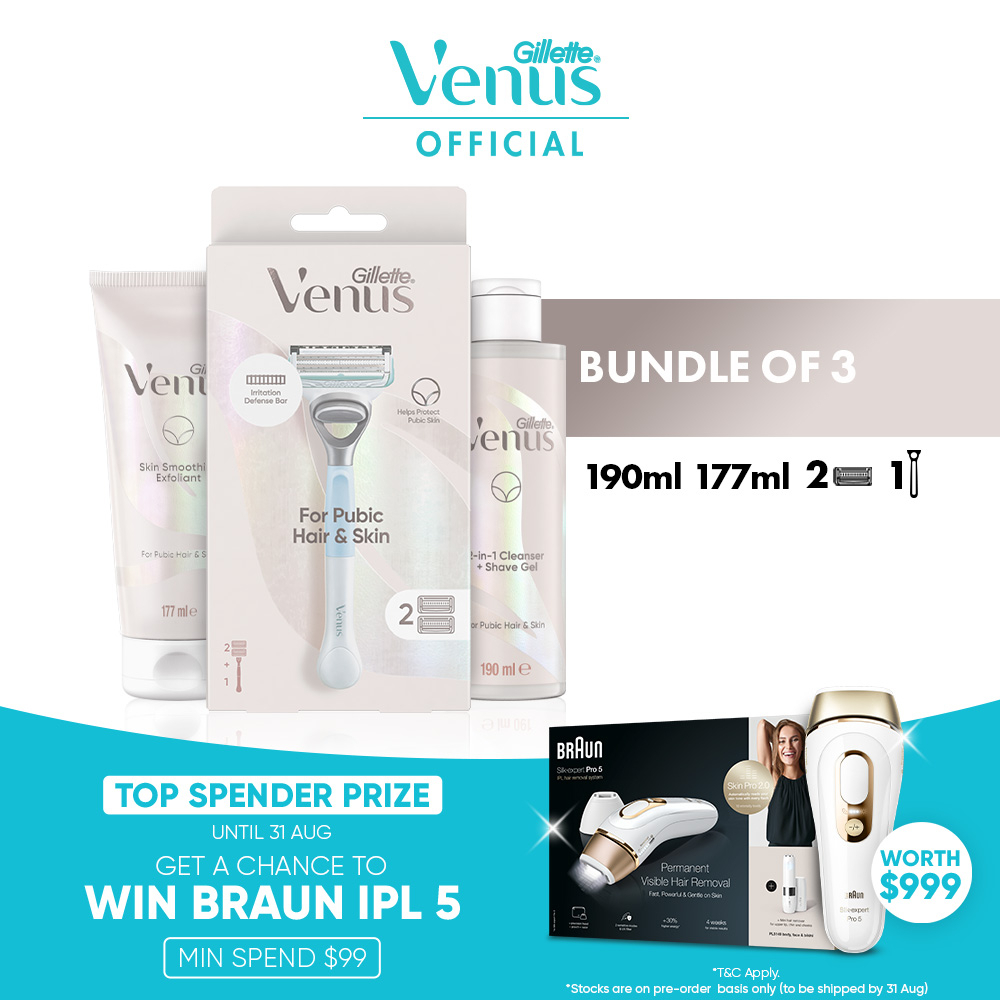 [Bundle Deal] Gillette Venus Razor Pubic Hair & Skin (Handle + 2 Refills)/3 Blade Refills/2in1 190ml/Exfoliant 177 ml