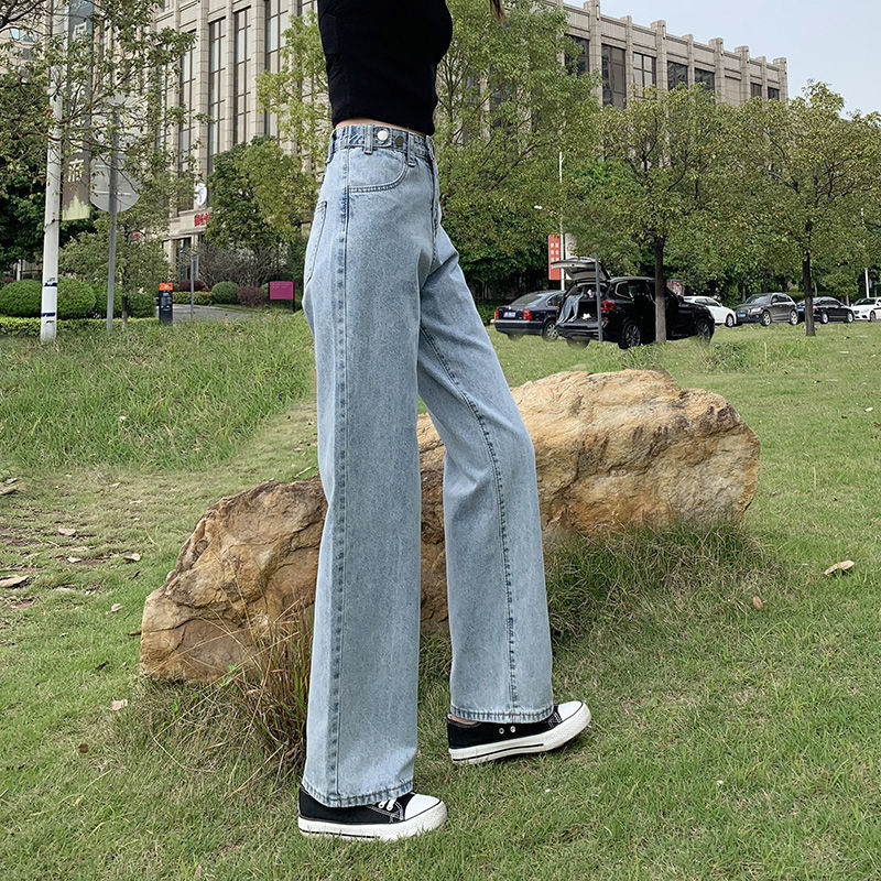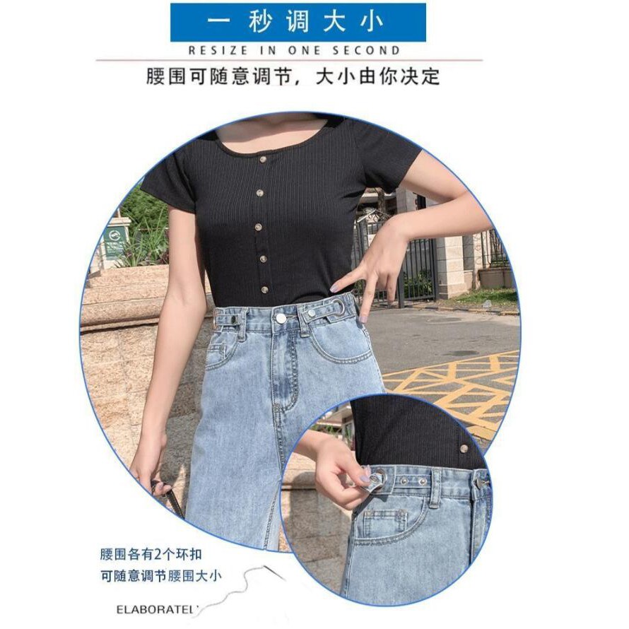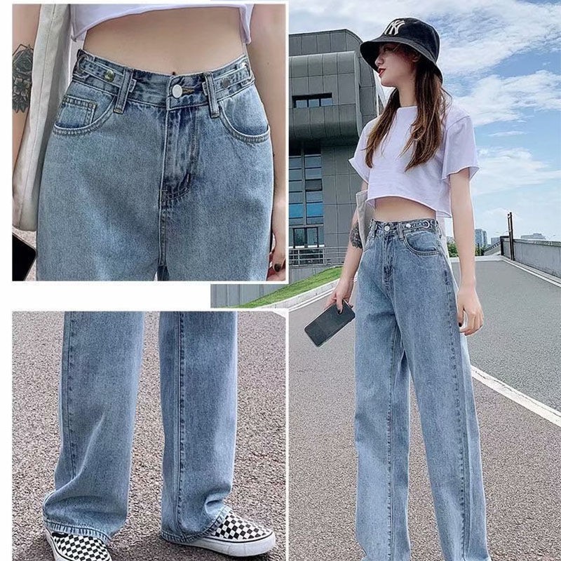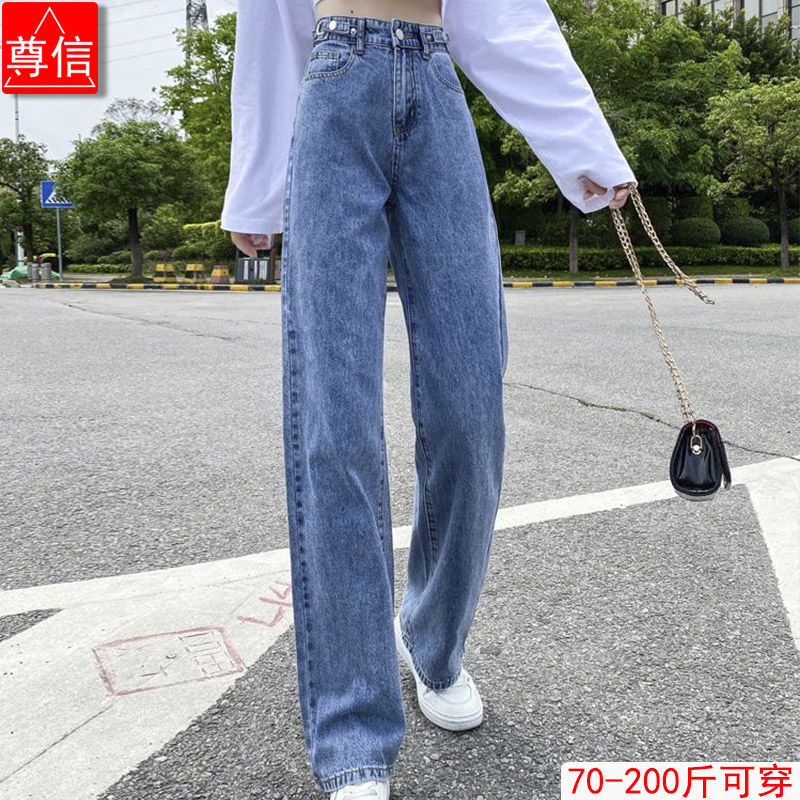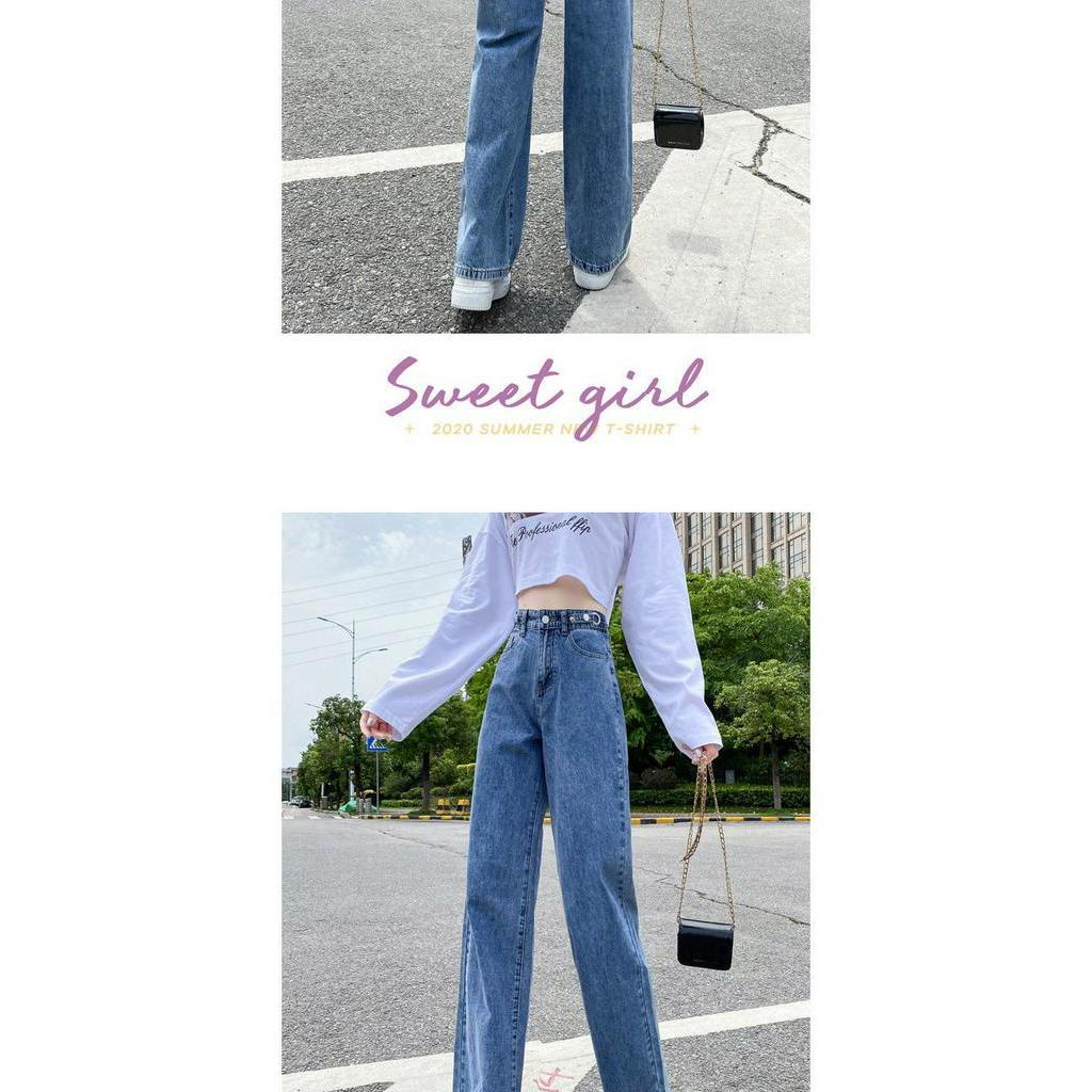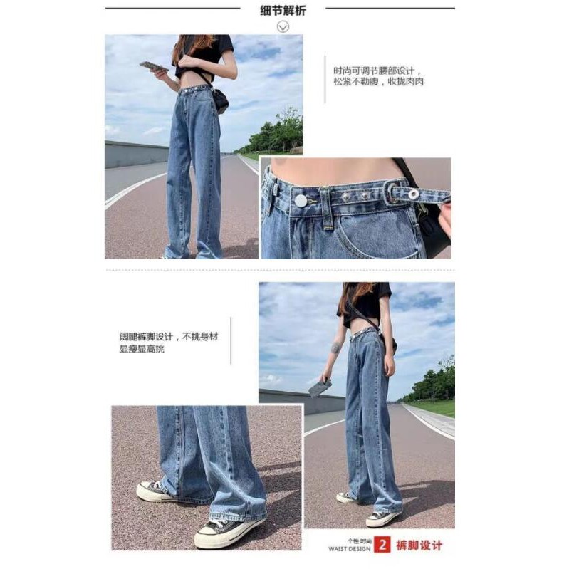 [OOTD wholesale] XS-2XL recommended by the store manager! Preferred high-waisted wide-leg jeans Women's plus size slimming loose floor-length trousers Adjustable trousers design High-waisted deni