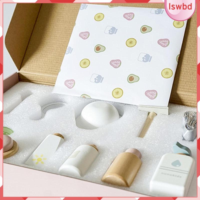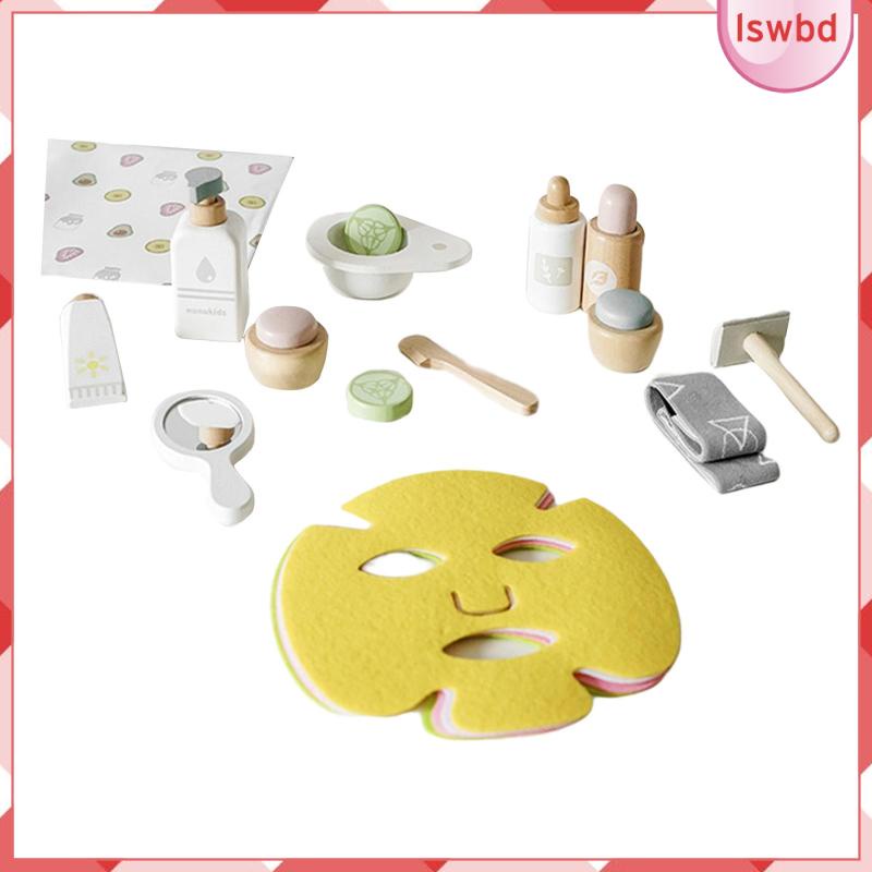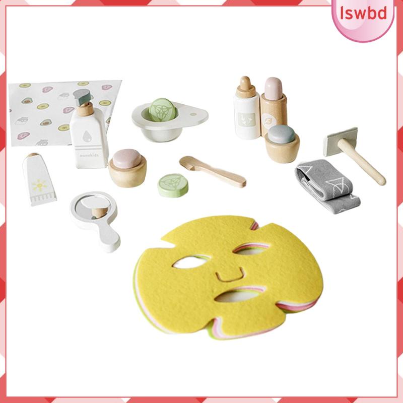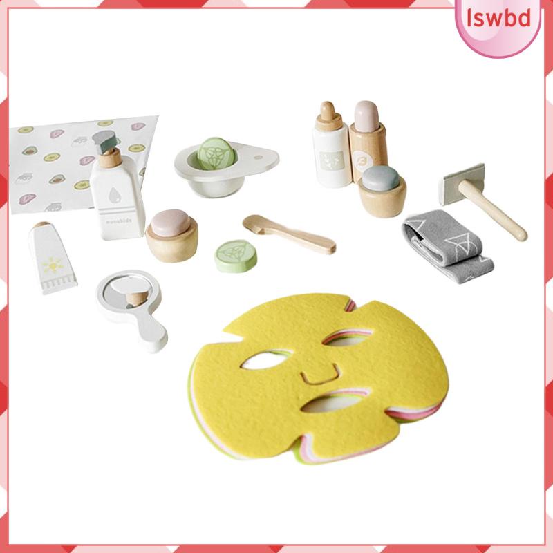 [lswbd] 17Pcs Wood Toy beauty set set makeup Set Pretend smooth Edges for Preschool