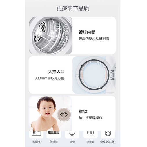 ✅FREE SHIPPING✅Haier Leader 7kg Dryer Healthy Drying Deodorant Mite Removal Fiber Three-Dimensional High Temperature Automatic Dryer Household Small Sterilization Roller 7-F&【直排】海尔 Leader 7kg 全自动