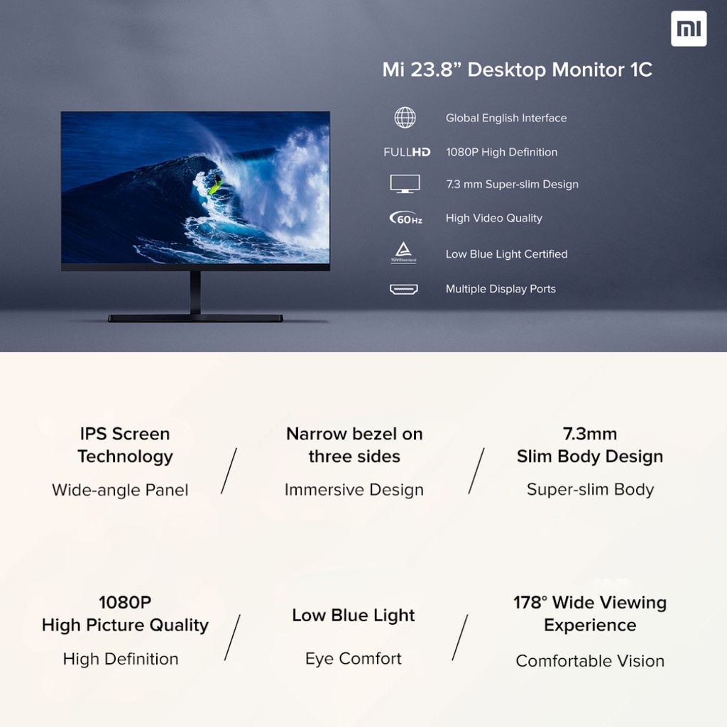 【READY STOCKS】3 YEAR WARRANTY Xiaomi Monitor 23.8-inch 1C Desktop Monitor | 1080P HD | IPS Wide-Angle Panel