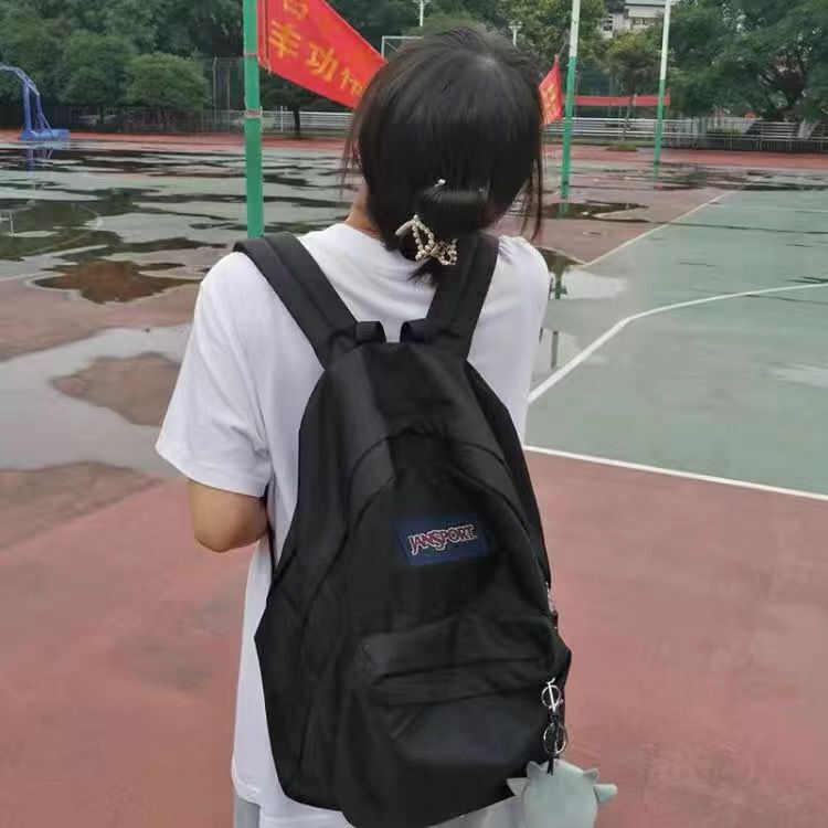 【SG Stock】 backpack solid color men's and women's backpack student school bag Travel Backpack Variation: Black Side Pock