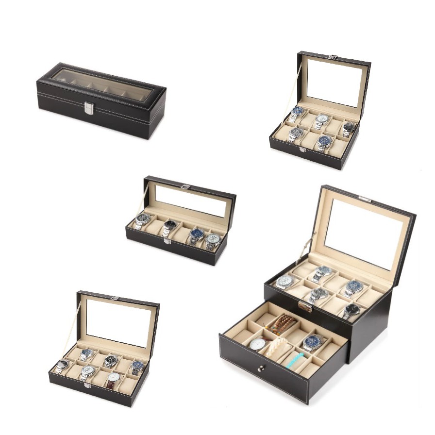 ?CHEAPEST!!!? Watch Box Storage Case - PU Leather Accessories Glass Top Jewelry Organizer 6 10 12 20 Slots Watchbox
