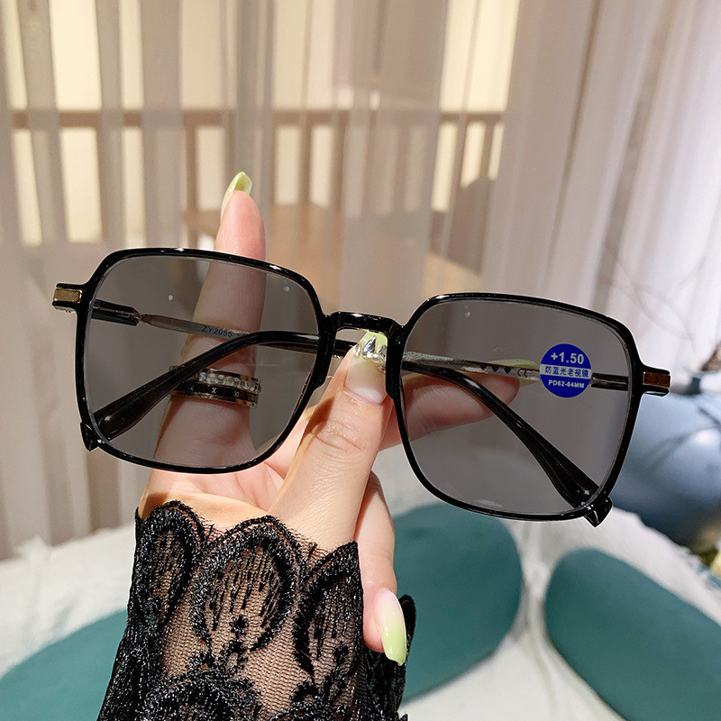 (+0~+400) Photochromic Presbyopia glasses, color changing anti blue light presbyopia glasses, women's large frame fashionable presbyopia glasses,+75,+125,+175,+225,+275,+325,+375