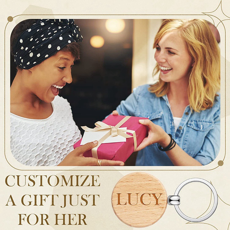 100 Pieces Wooden Keychain Blanks Round Wood Keychain Blanks Unfinished Wooden Key Ring Key Tag B
