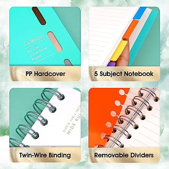 Suitable Size:The size of the 5 subject notebook is 7"X8.5". The small size is easy to carry, and it can be easily put in a bag or schoolbag to take to class. It is the best choice for students to take notes.