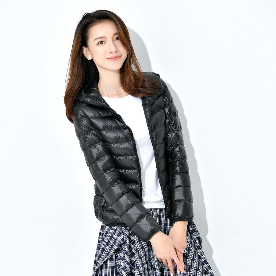 2023 New Autumn and Winter Thin Down Coat Women's Hooded Short Large Slim Fit Women's Down Jacket