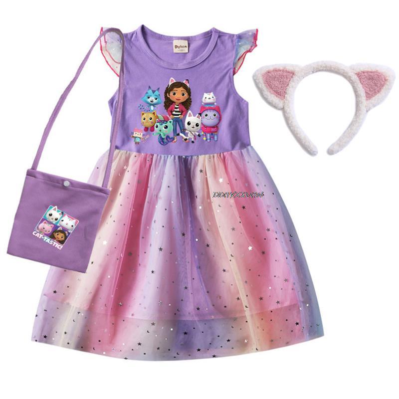 2023 Summer Gabby Cats Costume Baby Girls Gabby'S Dollhouse Dress Kids Cosplay Princess Vestidos Toddler Children Birthday Wedding Party Dresses With Headwear