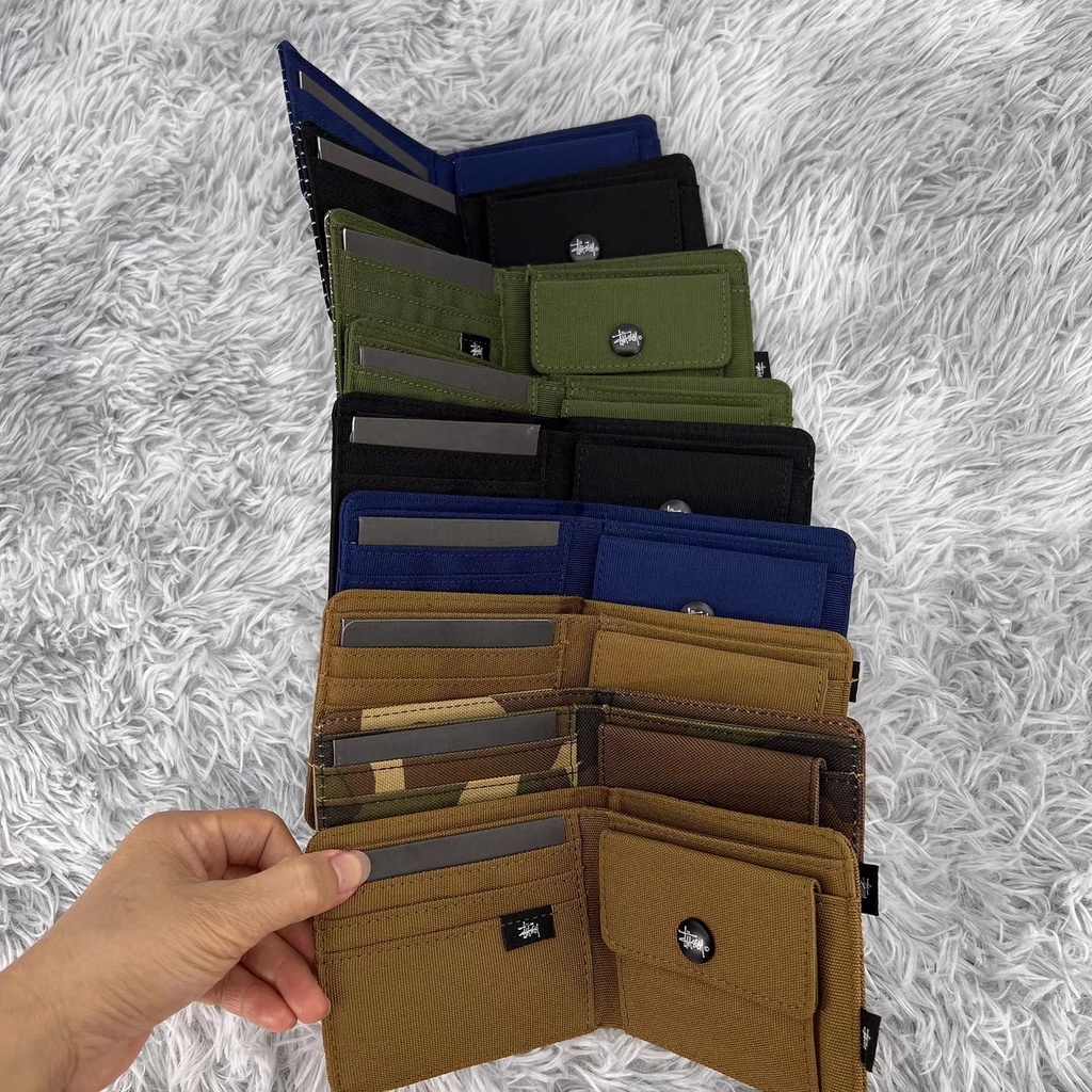 2024 Stussi Short Wallet Oxford Cloth Waterproof Coin Pouch Multifunctional Classic Canvas Men Two-Fold Card Short Wallet for Gift