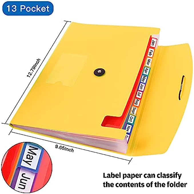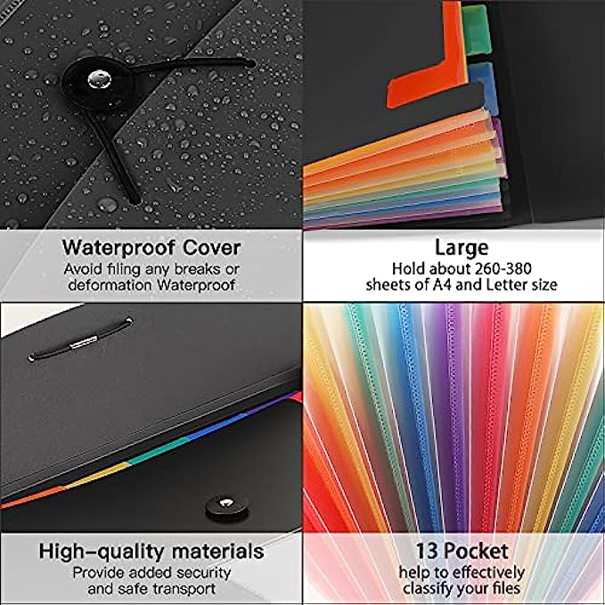 4-Pack 13-Pocket Expanding file folder, suitable for A4 size paper and letter size, standard documents and filing.
