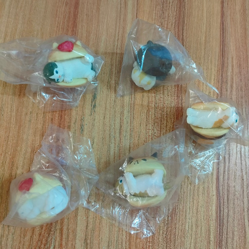 5Pcs/Set Mofusand Kawaii Tempura Fried Shrimp Shark Cat Action Figure Toy PVC Hamburg Cat Model Doll Figurines Home Decoration Fans Children Gifts
