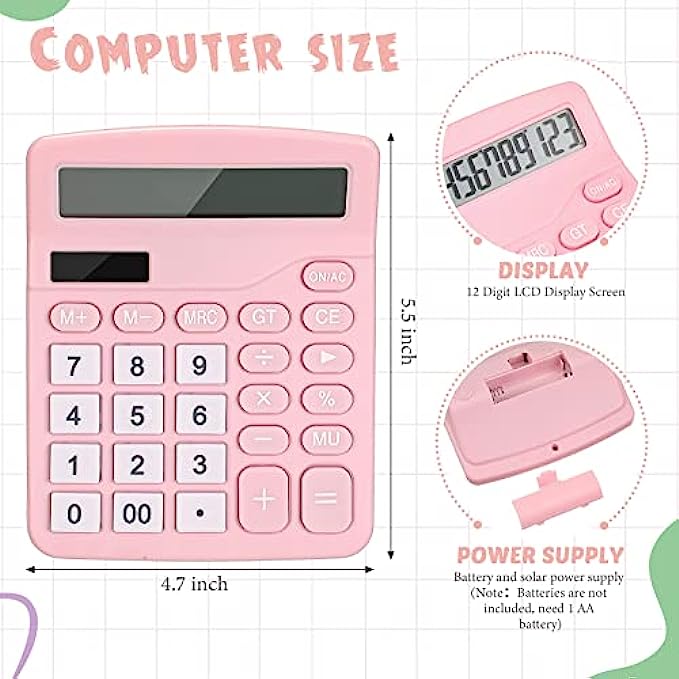 Note for calculator: battery is not included; The calculator has two power modes, one is to use 1 AA battery, and the other is solar energy; Tip: In the solar state, the display will change according to the light intensity, if you need a good experience, it is recommended to install the battery