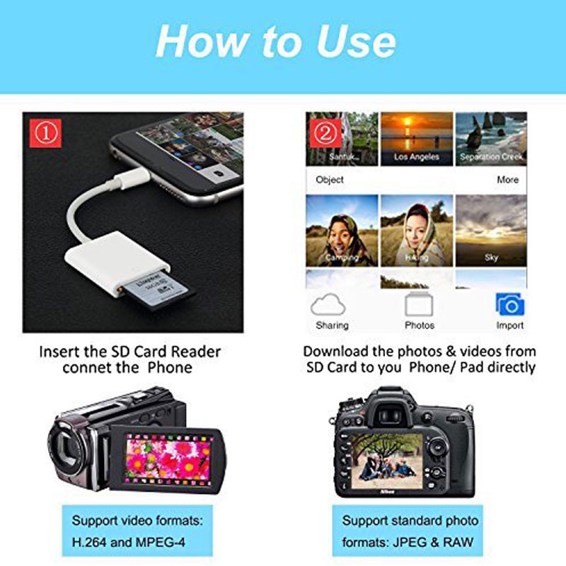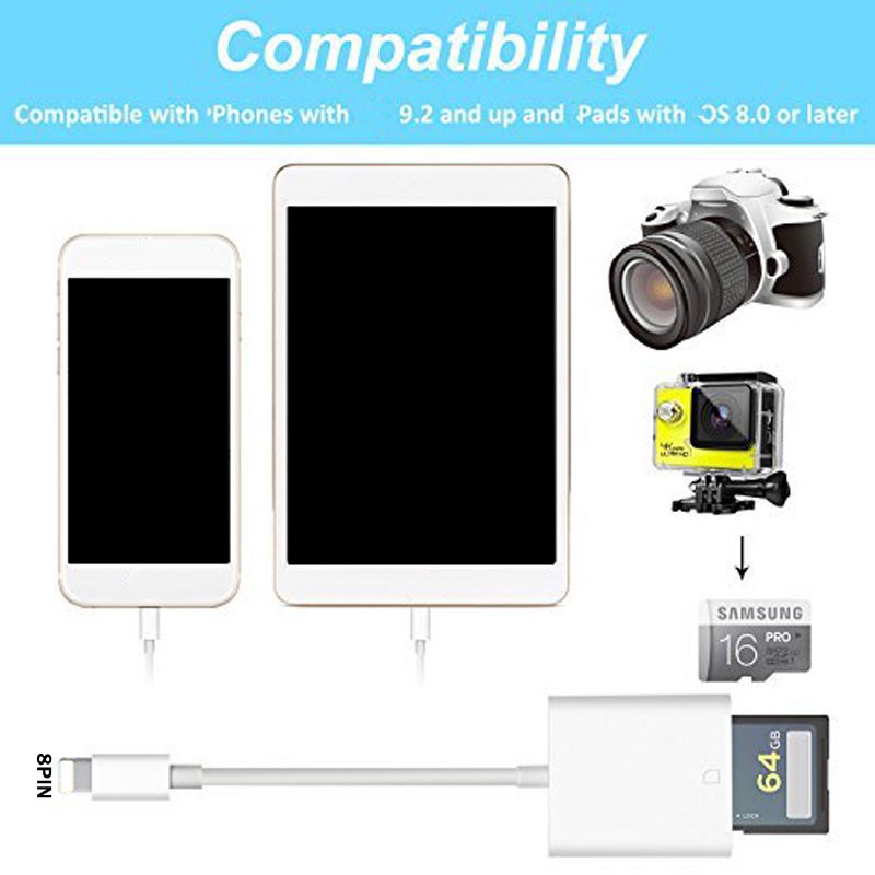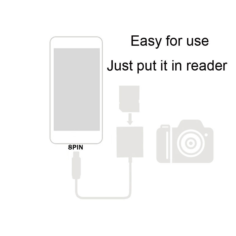 8PIN to SD Card Reader Adapter Smart Digital Camera Card Readers OTG for Phone