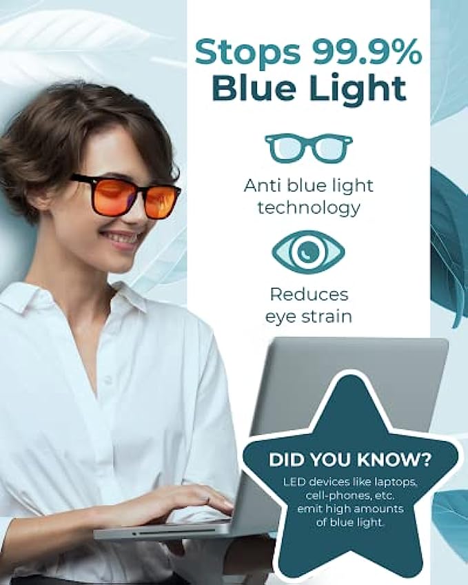 99.9% Blue Light Glasses - Computer Glasses - eSports Gaming Glasses Use Anti-Glare & Anti-Fatigue Filters to Help You Sleep Better, Stop Eye Strain, Headaches & Migraines to Look, Feel &
