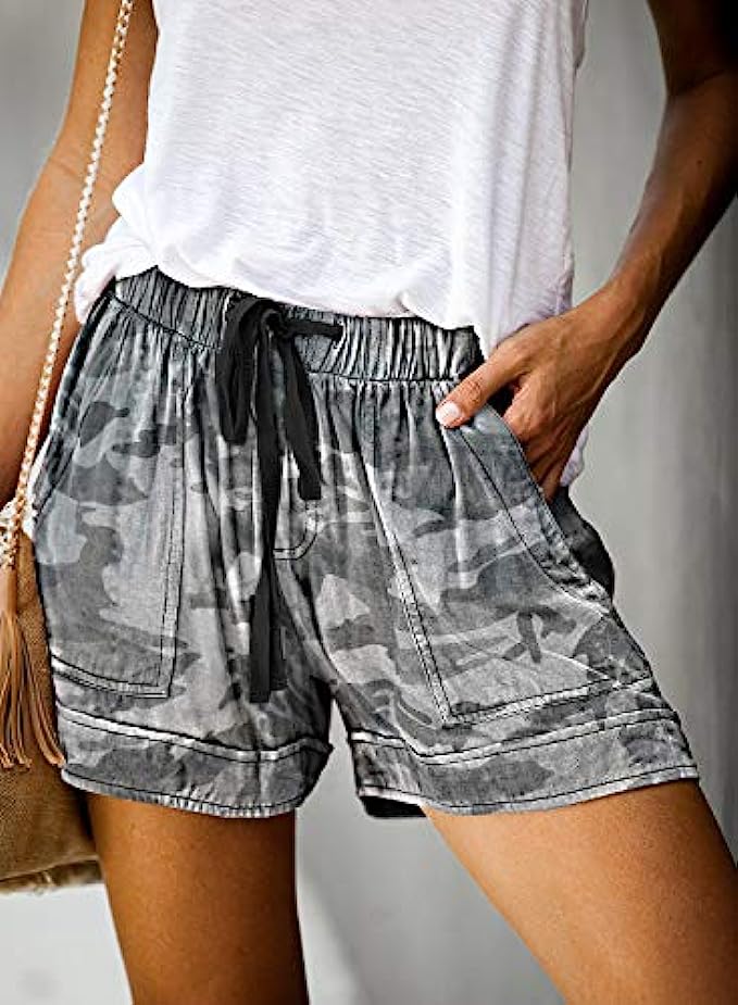 Acelitt Women Comfy Drawstring Casual Elastic Waist Pocketed Shorts Pants (S-XXL)