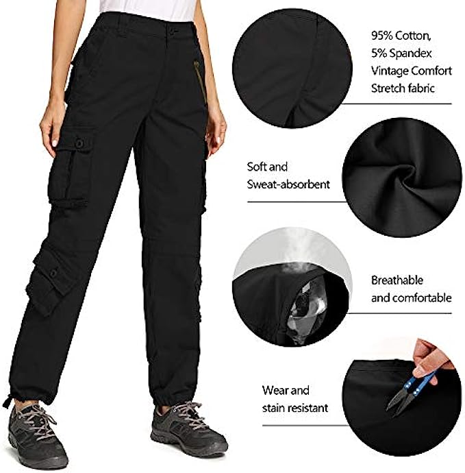 • Womens Cargo Pants with Pockets: Soft and breathable fabric.This womens casual pants are constructed premium ripstop fabric,which is sturdy and flexible to ensure maximum performance in the field.