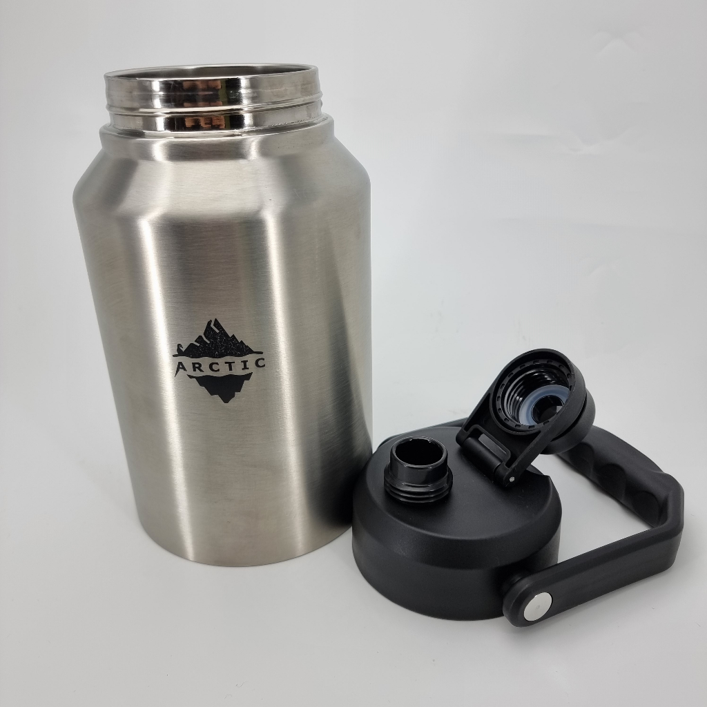 Arctic Gallon Jug | Thermalware sweat free tumbler water bottle workout spill proof | Black silver | 1.89L & 3.79L
