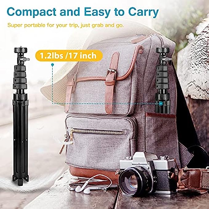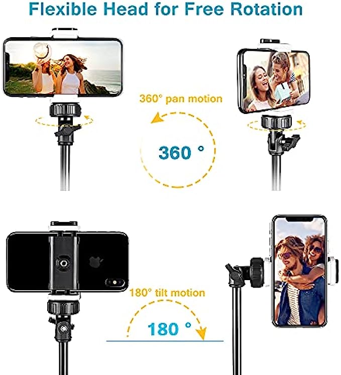 Lightweight While Durable–Made of a robust aluminum-alloy structure, the cell phone stand is remarkably lightweight and ultimately portable. The 180-degree maneuverable tripod head enables you to capture your best shot from any desired angles.