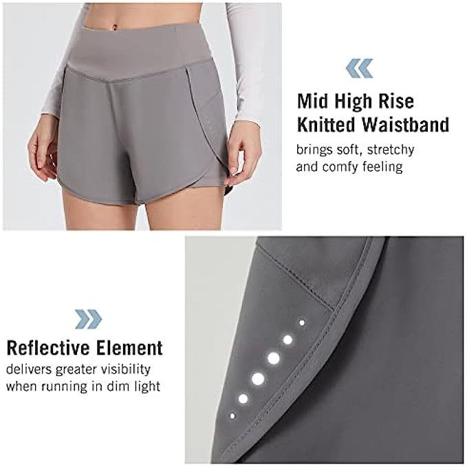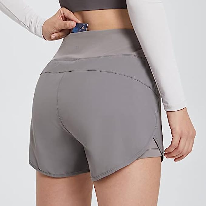 Liner: 85% Nylon, 15% Spandex Pull On closure Stretch compression liner shorts provide a supportive fit for enhanced coverage. 3" inseam won't roll up when exercise 4" outer layer with lightweight and quick-dry fabric wicks away sweat to keep you cool and comfortable in hot summer days, side split design for wide range of motion The built-in shorts with side pockets store your cell phone conveniently. Back pocket allows for keys or cards to free your hands when workout or running Mid high rise knitted waistband brings soft, stretchy and comfy feeling Women's 2 in 1 running shorts with phone pockets is perfect for your running routine, daily training, athletic, jogging, workout, gym fitness and walking