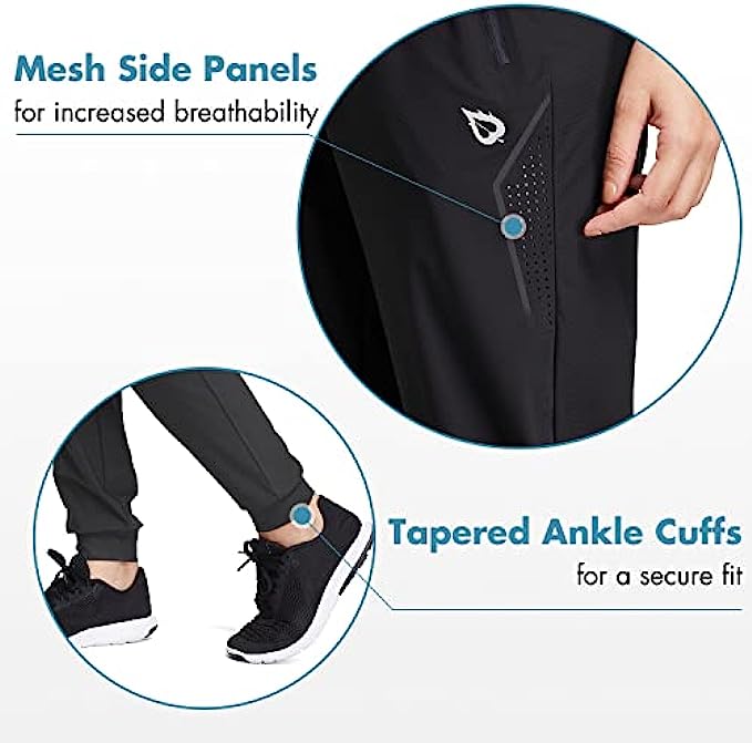 73% Nylon, 27% Spandex Drawstring closure Machine Wash Premium Soft Fabric: High-Stretchy & High-Lightweight & Moisture-Wicking & Comfortable Feeling. More Suitable for Autumn & Summer & Spring, but can wear leggings or tights under these jogger pants in winter which keeps you warmer and lightweight but also looks slim. Zippered Pockets for secure storage: available for 6.5" Mobile Phone, e.g. iPhone 11 Pro Max/Samsung Galaxy S10+ Unique Ventilated Mesh Side Panels provide in maximum breathability, keeping you fresh throughout your routines Internal Drawcord on elastic waistband offers a personalized fit, increases the range of motion Ultral lightweight & Elastic Tapered Cuff for an athletic fit, pefect for running, workout, yoga, golf, hiking, jogging, outdoor activities, gym fitness, lounging around the house, causal wear, etc.