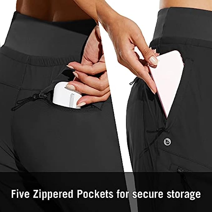 BALEAF Women's Lightweight Hiking Jogger Pants Camping Summer with Zipper Pockets High Waist Quick Dry