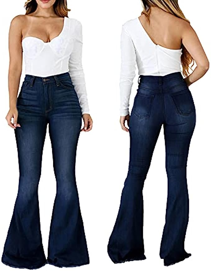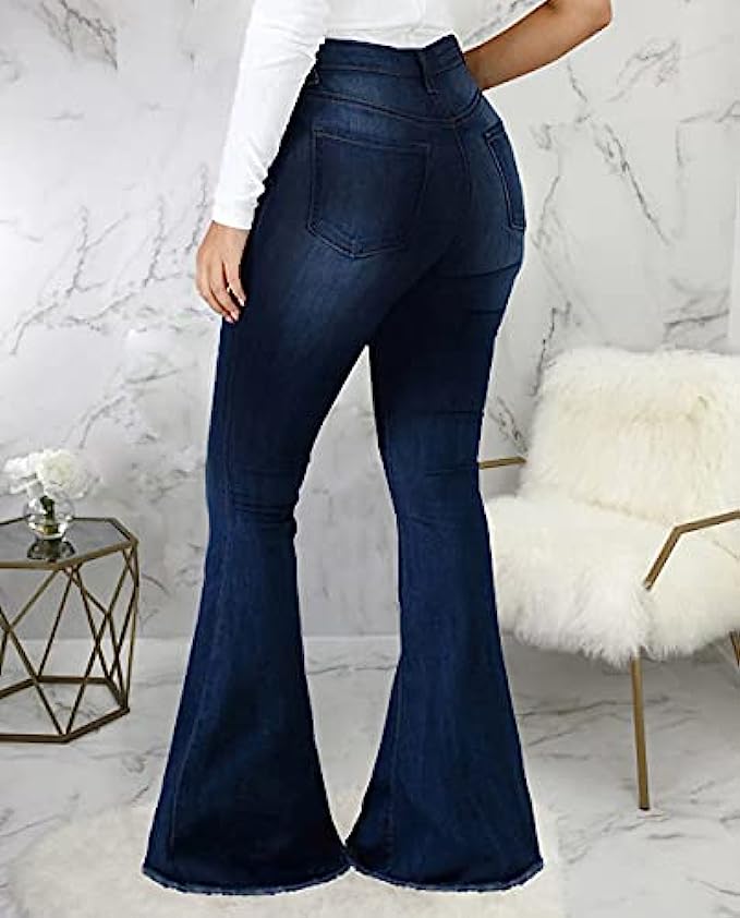 • Popular Bell Bottom Style - High waisted jeans for women, elastic waist,wide flared jeans for women, frayed hem. These flare bell bottom jeans pants are popular with women because they highlights charming figure and show long legs very well.