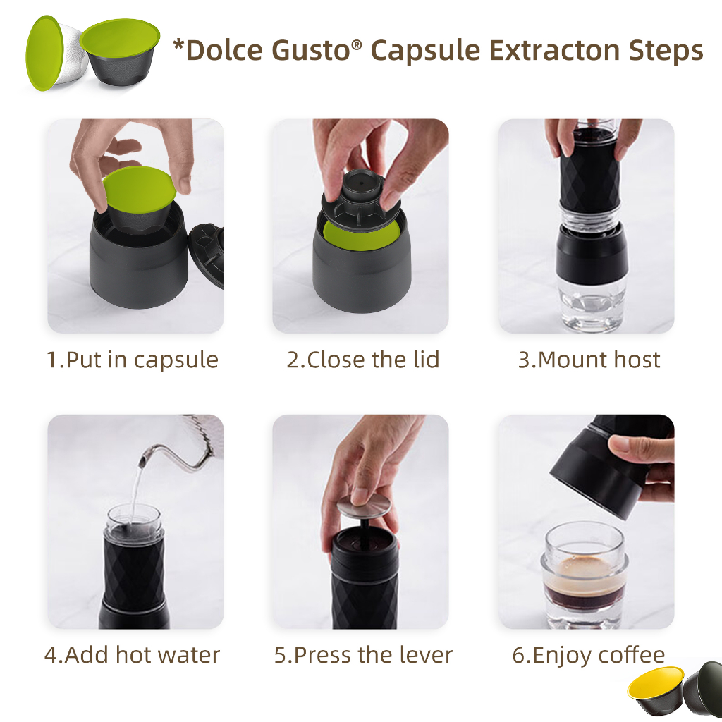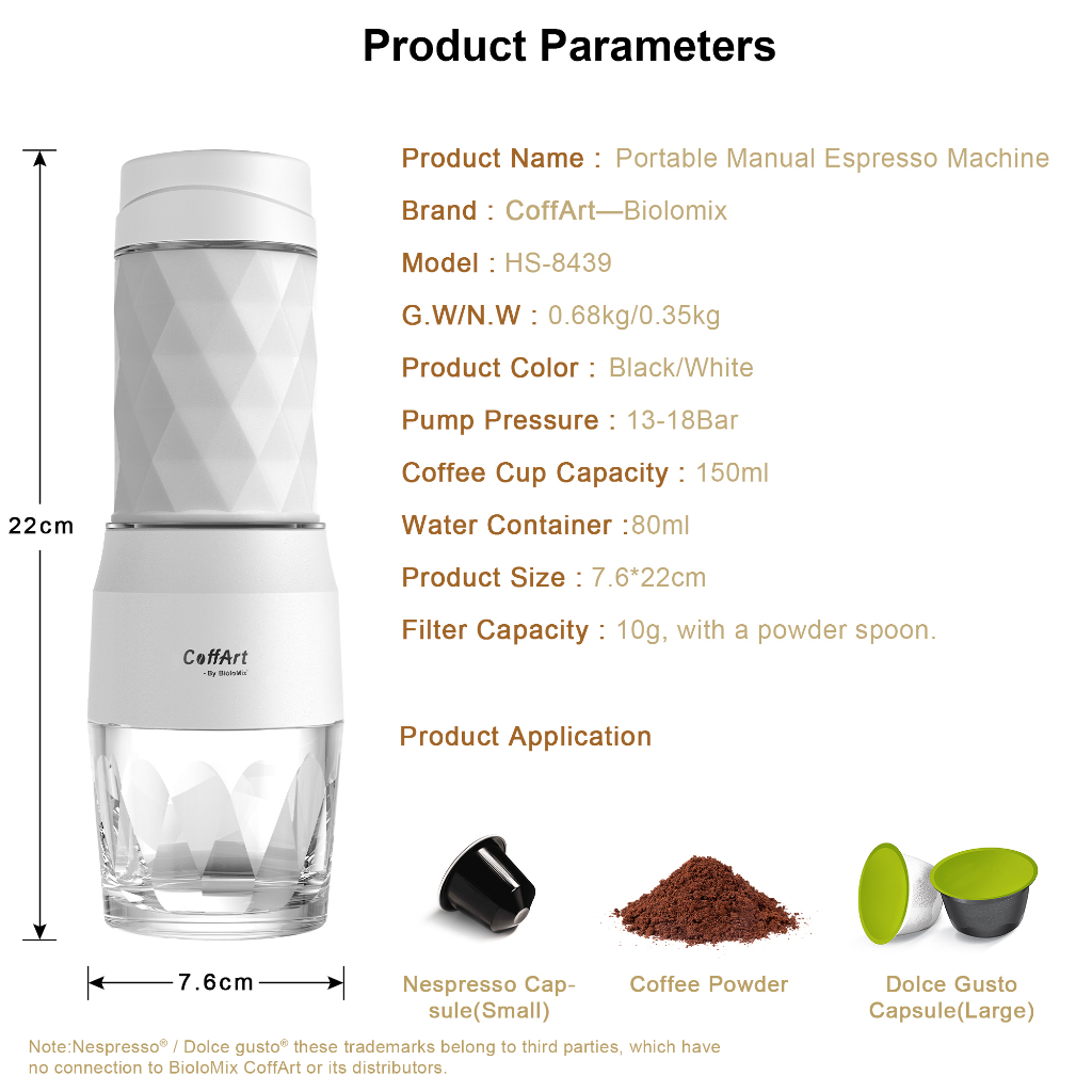BioloMix 3 In 1 Portable Coffee Machine Manual Capsule Espresso Maker For Nespresso Capsules & Dolce Gusto& Coffee Powder for Travel and Picnic Hand Press