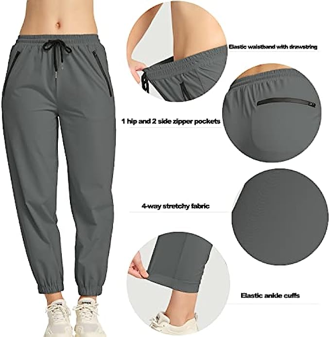 CerroTorre Women's Hiking Pants Waterproof Lightweight Quick Dry Athletic Joggers with Zipper Pockets