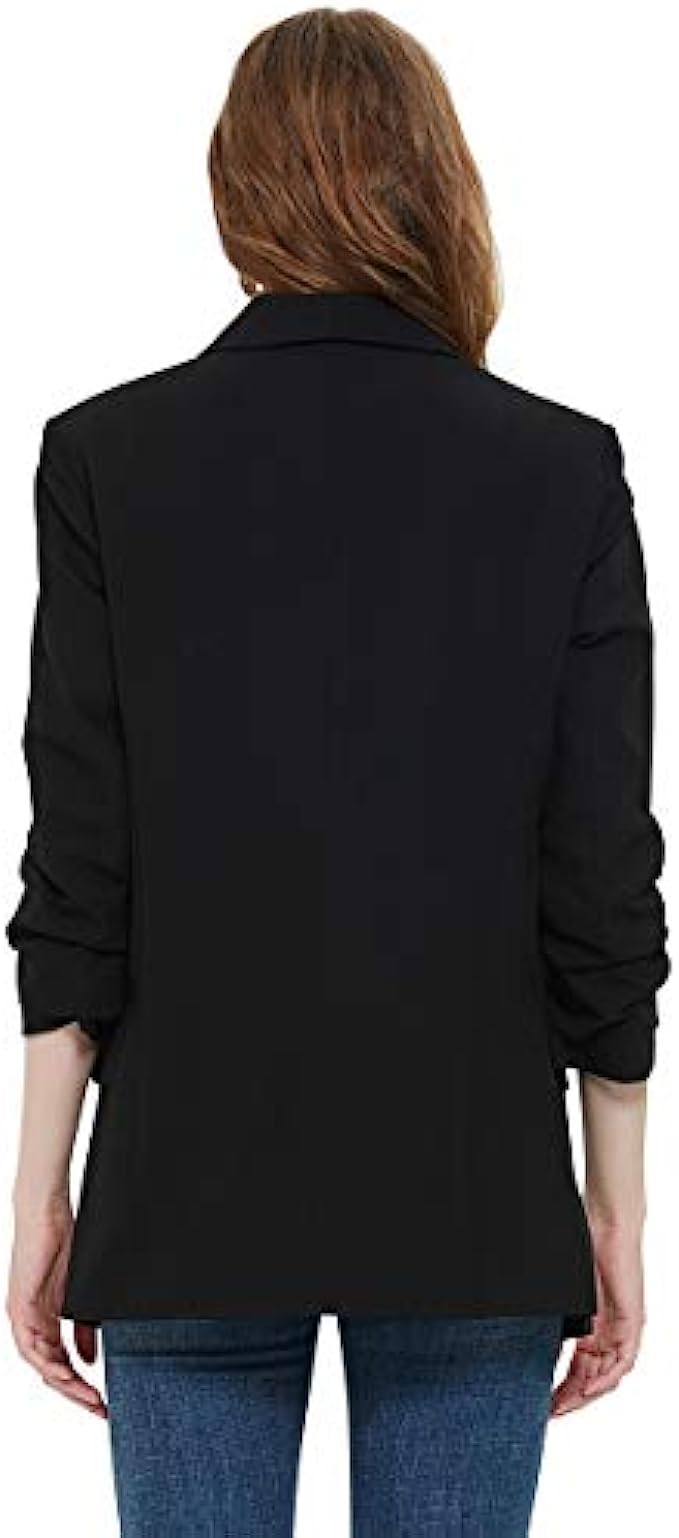 Charis Allure Womens 3/4 Ruched Sleeve Blazer Jacket Lightweight Work Office Open Front Solid Coat, Black