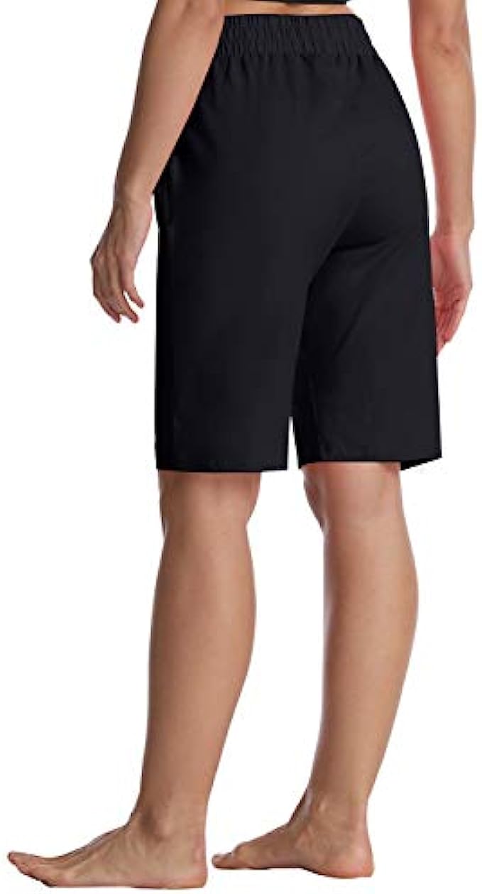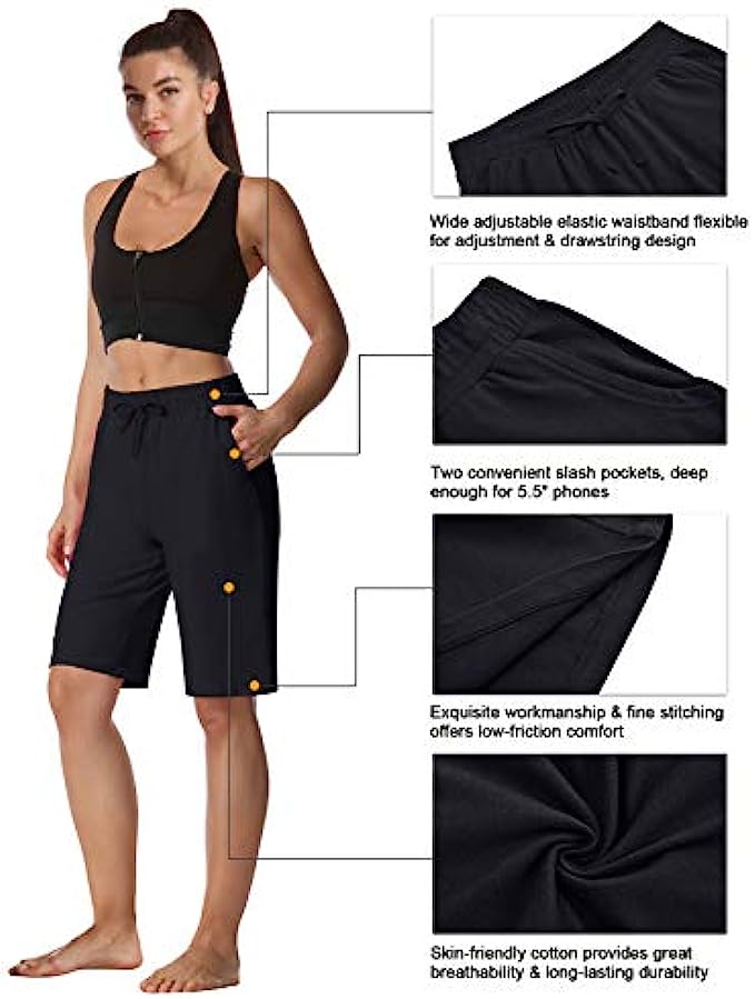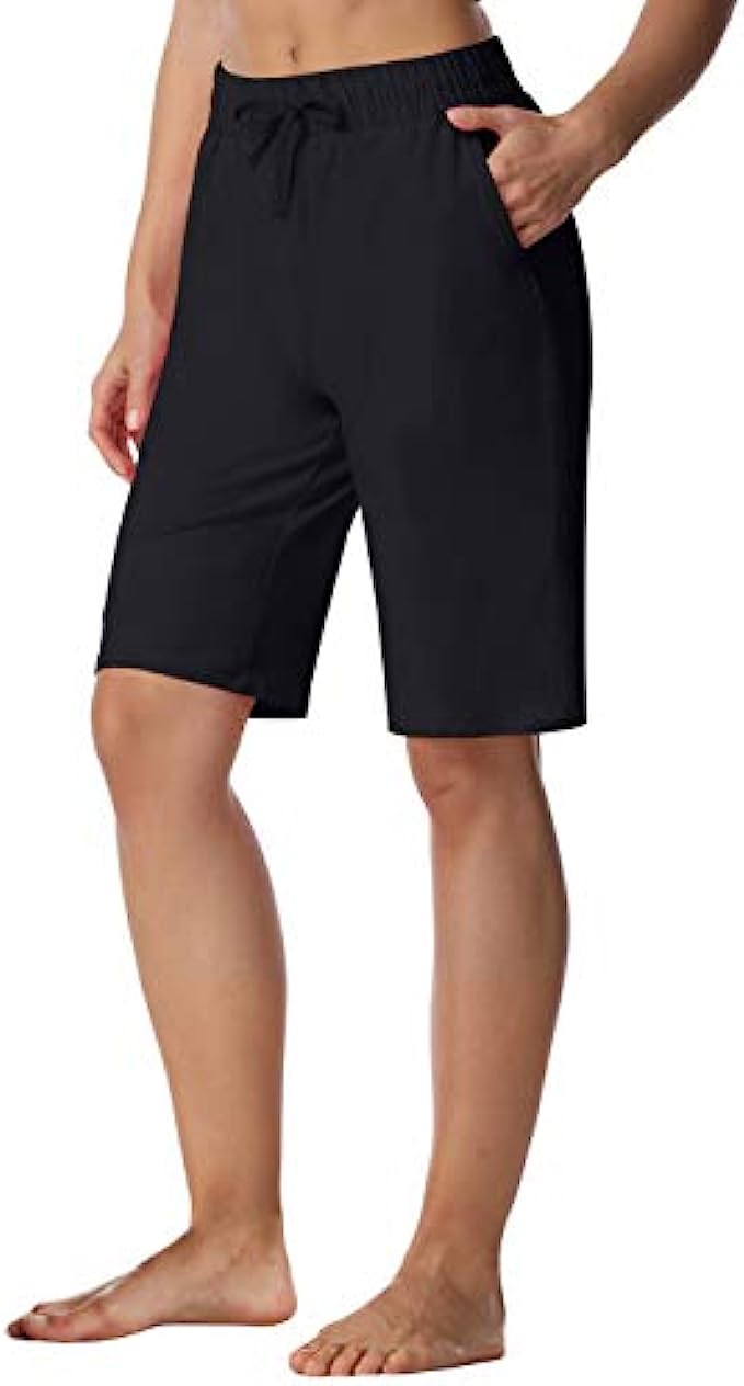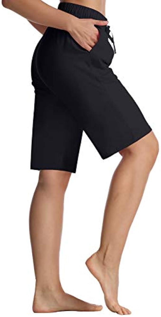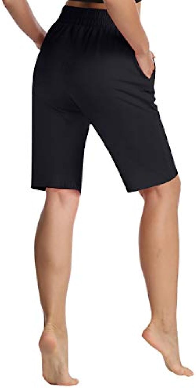 • Classic & Sporty Knee Length Bermuda Shorts Design -- Semi-fitted, Straight leg with 10½"-12" Inseam, excellent length offers full coverage for the deepest squats and stretches, easy to pair with all kinds of tops