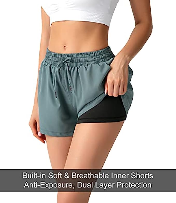 【Shorts with Two Pockets】The workout shorts design with two side pockets to store your valuables safely, free your hands during exercising.