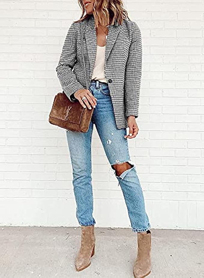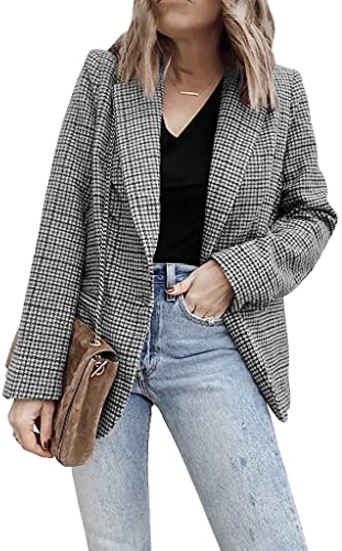 Cicy Bell Women's Long Sleeve Casual Blazer Work Office Button Open Front Jacket Suit