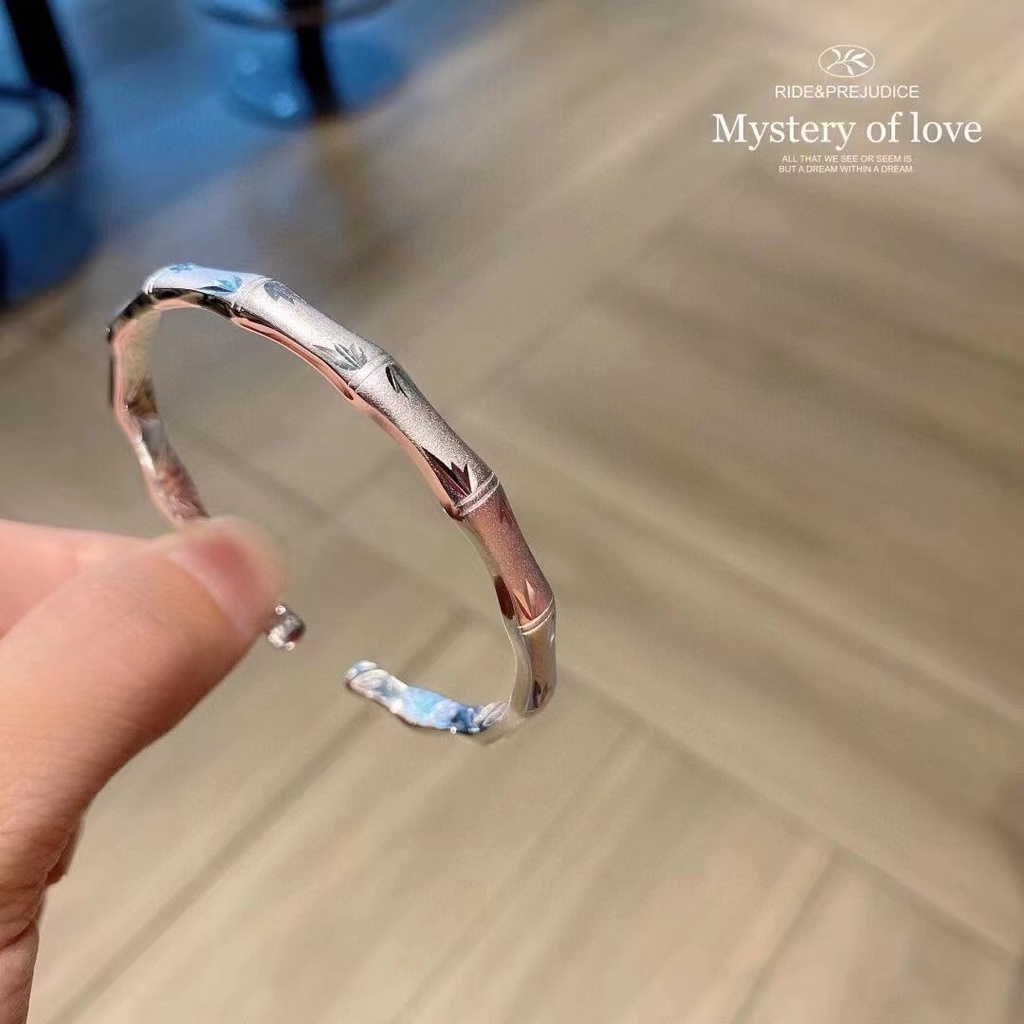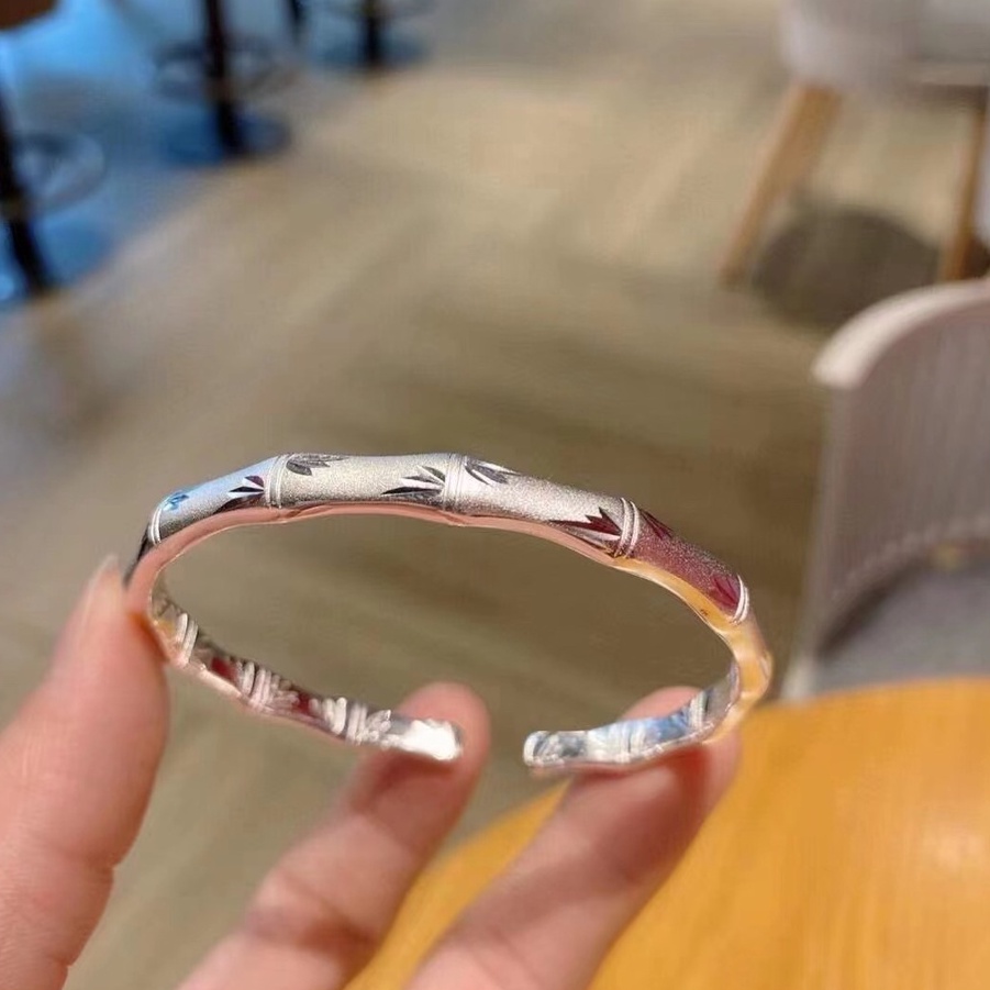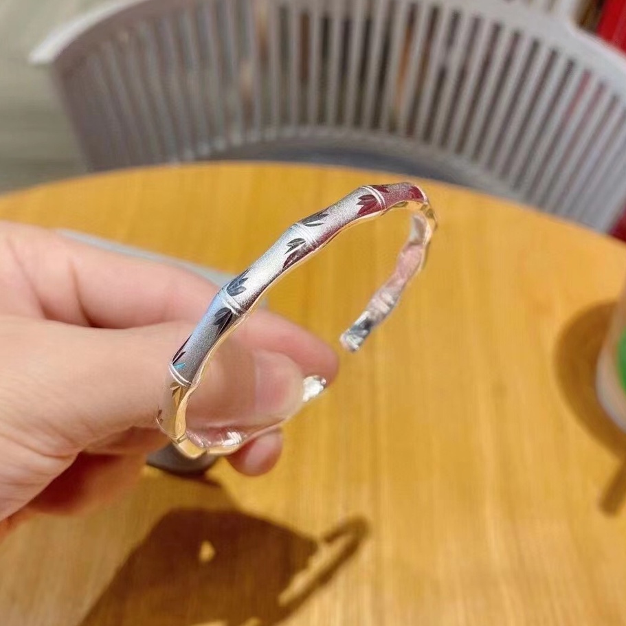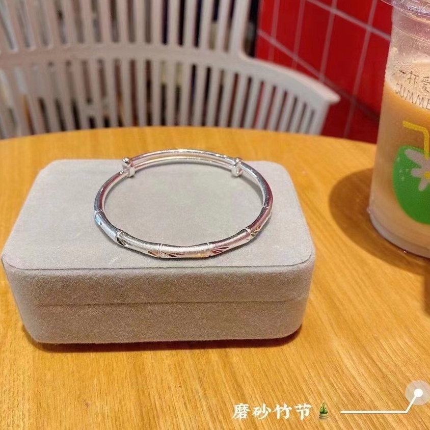 Classic Style Frosted Bamboo Sliding Pull Bracelet Open Wide Face Adjustment Pure Silver 999