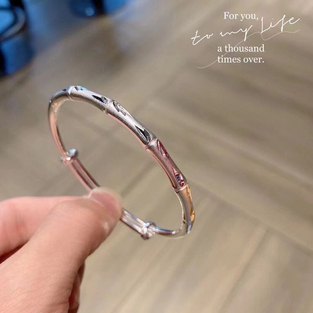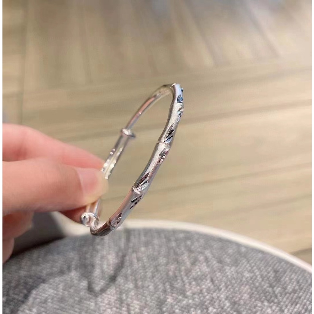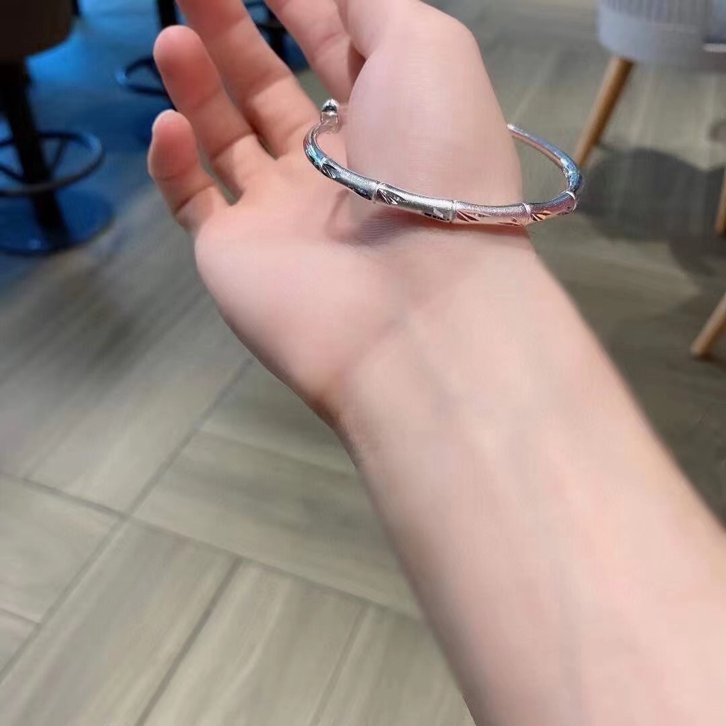 Classic Style Frosted Bamboo Sliding Pull Bracelet Open Wide Face Adjustment Pure Silver 999