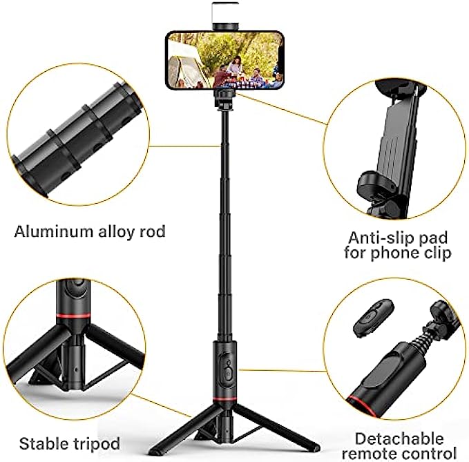 ?【All-in-one Mobile Phone Tripod】The selfie stick tripod is multi-functional and adjustable. You can adjust the height flexible between 9" and 30". Not only can be your lightweight iPhone tripod stand for travel but also be an iPhone stand for video recording when you are live streaming or be an iPhone selfie stick tripod with remote when you taking family photos. Bringing the best photography results for multi-scene applications.