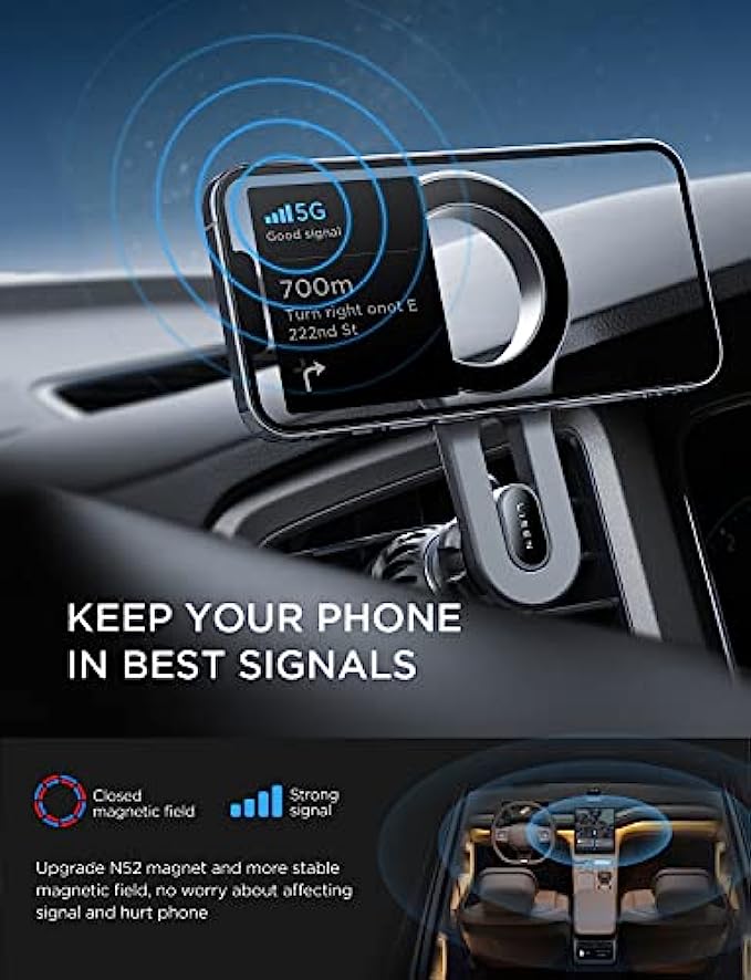 ?ExpertHolder fit for MagSafe: Our Master Magnet Car Phone Mount with Non-blocking/Mag safe Function is designed to create the perfect mood for every drivers' experience. With extension arm and free angle adjustment, they can create a comfortable ambience, or a vivid, bright and refreshing driving atmosphere - which suits your car best. ?More Stable, Less Blocking: LISEN brand laboratory has upgraded this magsafe car vent mount from 3 directions.①Upgrade extension arm to protect your phone overheating crash; ②Cell phone holder for car mount with most stable "Steel Hook";③Magnetic phone car mount that has the strongest magnet force, which can hold up to 10 iPhone 13 Pro Max. LISEN provides at least 1 years of user service. ?Protect Your Phone & Vent: This phone holder for for car vent is made of silicone. It will protect your mobile phone and automobile vent from scratches. Enjoy easy navigating, charing, calling, talking or listening to music on this carmount! ?Perfectly Compatible with Horizontal & Vertical Vents: The Steel hook clip of this cell phone mount for car is 50% longer than the ordinary one. It’s compatible with 99% Horizontal & Vertical vents, which solves the common problems of poor compatibility and cradle easy falling off on the market. We upgrade the iPhone car holder to meet all the needs of the car vent. Note: Round vents may not fit. ❤️️Doing Responsibly and Sustainably❤️As a responsible company, Lisen operates sustainably, to high environmental and social standards. We continue to embed sustainability ever deeper in the way we do business – in our own operations and beyond, together with our suppliers. Lisen cell phone holder for car also comes with 12 months warranty. Our expert team always stands by your side.