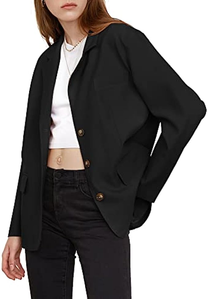 • Basic and Stylish Design: women’s blazers with basic lapel collar, long sleeves, padded shoulder, three front button, two functional flap pockets, one decorative chest pockets, solid color, relaxed fit, fully lined.