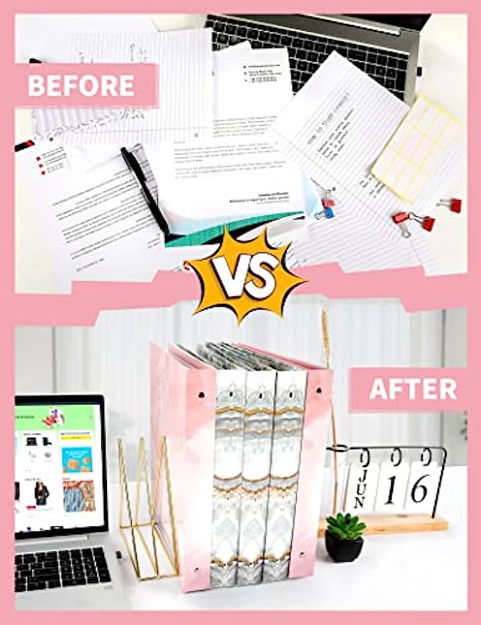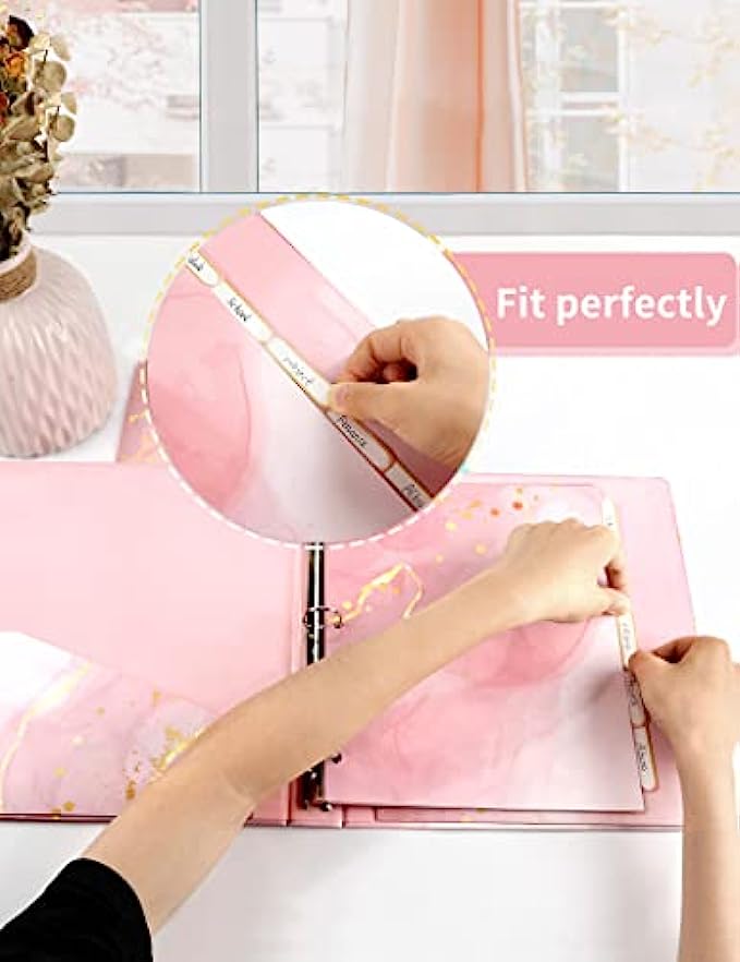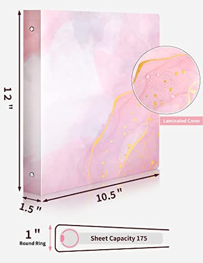CUTE BINDER: 1 inch binders 3 ring set are cute pink marble pattern. The lamination treatment of the cover of the binder shows gloss. Foil grain to the pink binder brings a high quality feel and a more elegant look. Say goodbye to the traditional monotonous design, how can you not love such a more attractive 1 inch binder?