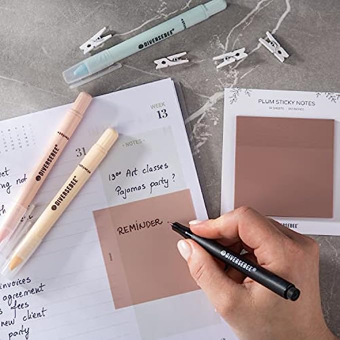 50 Pastel Sticky Notes: these ideal sized 3x3” sticky notes are suitable for writing with oil based markers, ballpoint pens, pencils. Not suggested for highlighters or water-based pens, because it may take a long time for them to dry.
