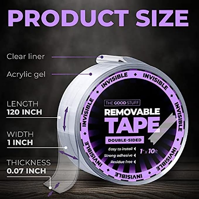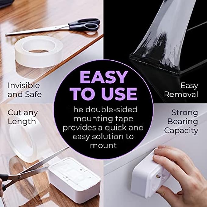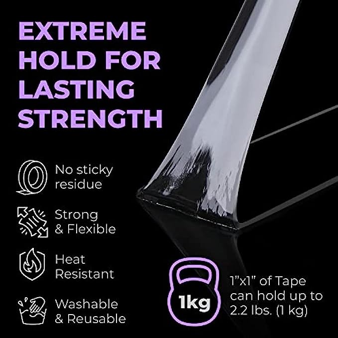 Multipurpose Double Sided Tape Heavy Duty – Need a shelf in your shower? A coat hook inside your closet door? Pictures hung on your apartment walls? Choose the good stuff two sided tape for tool free adhesive mounting tape that works