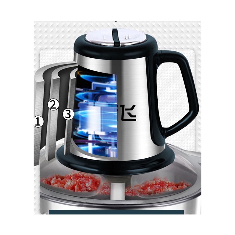 Electric Food Chopper, Meat Grinder Electric, Food Processor Electric 2L 5L 3L Stainless Steel Meat Blender Food Chopper for Meat, Vegetables, Fruits and Nuts with 4 Sharp Blades