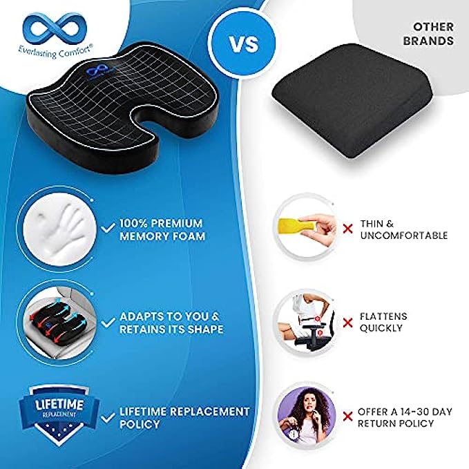 Simple Solution to Your Uncomfortable Chair Problem: Made with pure memory foam, our pressure relief seat cushion uses your own body heat to adapt to your curves, giving you the support your current office chair lacks