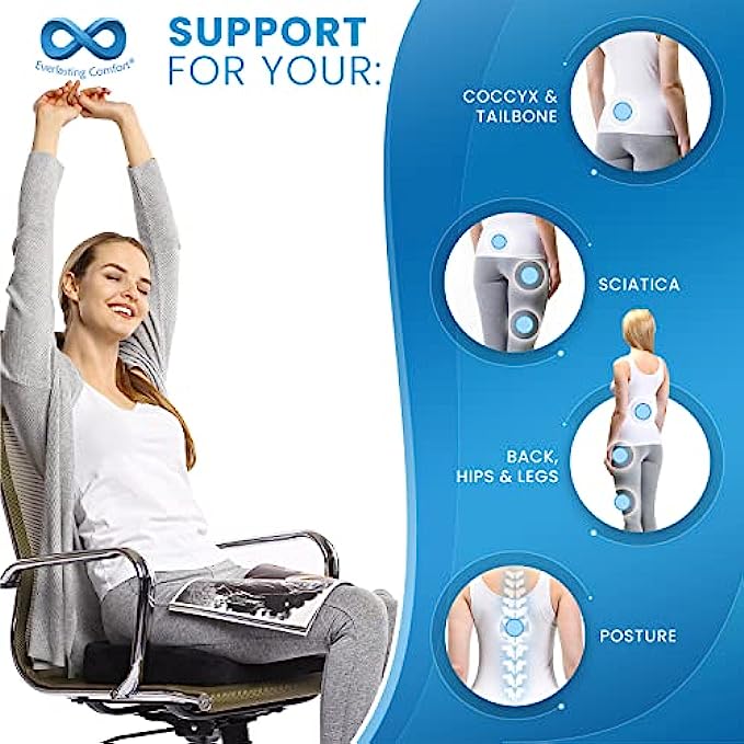 Prevents Unwanted Bottom Sweats: Some chairs don't allow air to circulate, making you sweaty. Our coccyx seat cushion has a breathable cover that doesn't trap heat, so you sit comfortable and cool