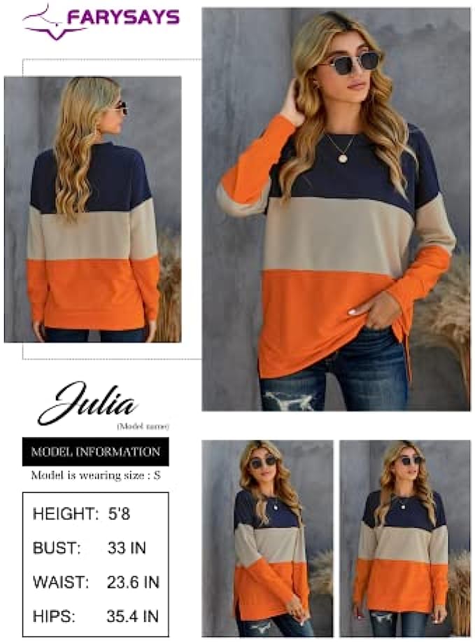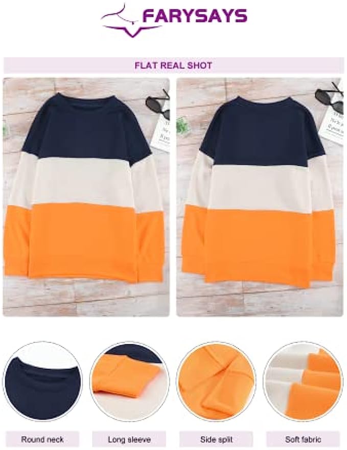• Features: Long sleeves, crewneck, color block, side splits, pullover style, casual and loose style fits for any body shape, and a sweatshirt necessary for women wardrobe.