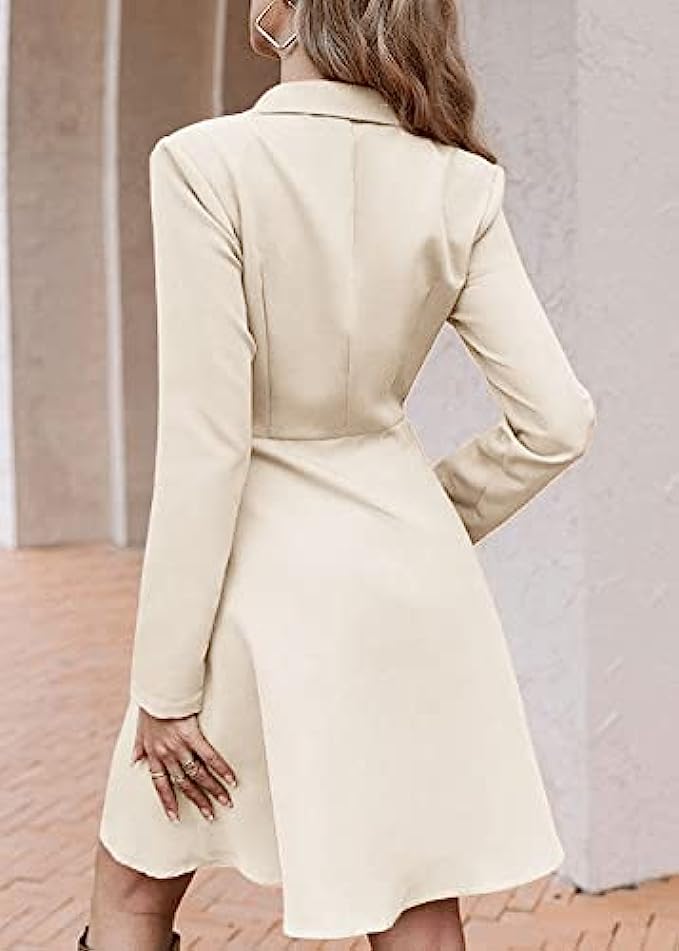 Febriajuce Women's Casual Blazer Dress Button Down Long Sleeve Elegant Work Office Dress Business Suit Midi Dress