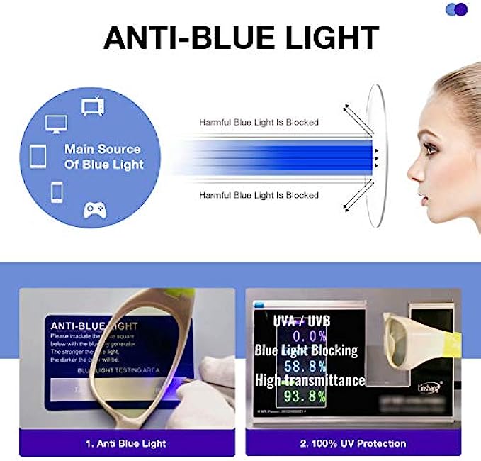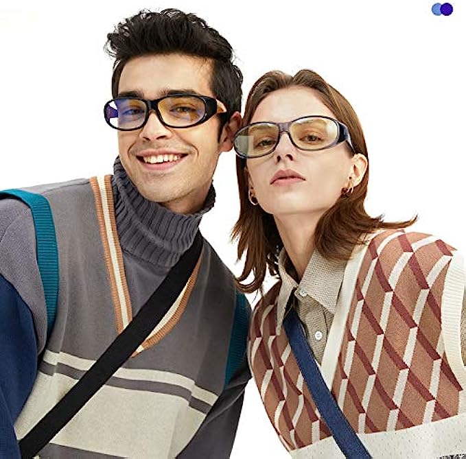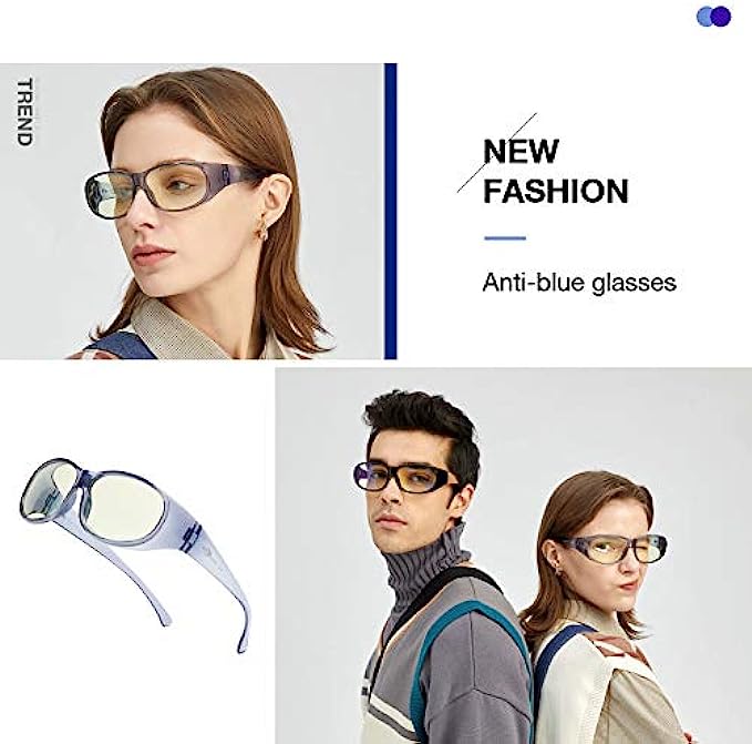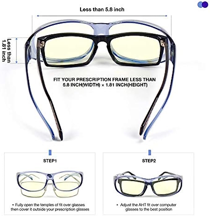 Cellulose Triacetate lens DURABLE & COMFORTABLE WEAR - AHT fitover glasses have high quality, flexible frames that are designed for comfort and durability. They are ideal for gamers, people who spend long hours working with screens or cellphones, or people who have trouble sleeping after late night gaming, TV or cellphone use. PROTECT YOUR EYES - High Energy Blue Light emitted by electronic devices (Computers, TV, smartphones) have shown to increase the risk of vision conditions from sore dry eyes to macular degeneration. Maintain healthy eyes by reducing exposure to high energy blue light. EXCLUSIVE PATENT TAC LENS - High Transmittance, Low Color Aberration. Exclusive patent layers lamination technique with slight tinted lenses, cuts High-Energy Blue Light to minimize Digital Eye Strain. TAC lens can not only block harmful blue ray, 99.9% UVA & UVB Protection, also with 93% high transmittance, providing a prefect BLANCE between eye protection and visual experience. MULTIFUNCTIONAL WRAP AROUND STYLE GLASSES - Specially designed for wearing over prescription eyewear, it easily wear over your regular glasses, such as Myopic Glasses/ Reading Glasses. Of course, you can also wear these glasses on their own, universal size fits most face shapes. LOOKS GREAT ON EVERYONE - Stylish 'Transparent' Frame, great for both men and women! You’ll look cool and feel great in the office and at home. Match different costume style, give you a super great stylish look.