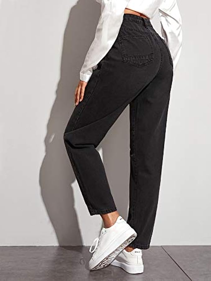 Soft Fabric Zipper closure Machine Wash Fabric has non stretch but breathable Feature: denim jeans, high waist, straight leg, solid plain, zipper up, button end Occasion: suitable for everyday wear, street, school, casual wear, holiday, weekend, perfect to match with crop top or blouse shirt Care: Machine wash in cold/Hang to dry Please refer to size chart which we provide in our photos (not amazon's)