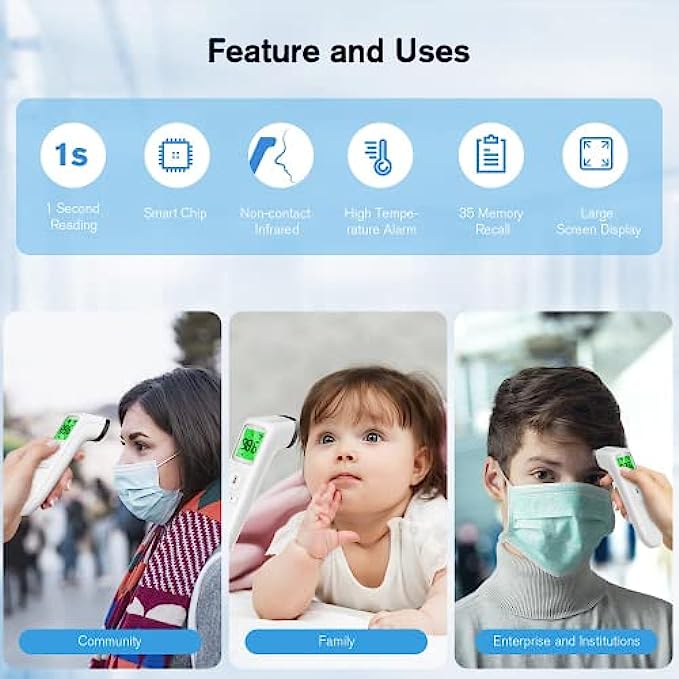 Fast and Easy Temperatures Readings: Taking your family’s temperature with this digital thermometer is as simple as pointing, and pressing a button. It uses infrared technology and can show readings in Celsius or Fahrenheit.